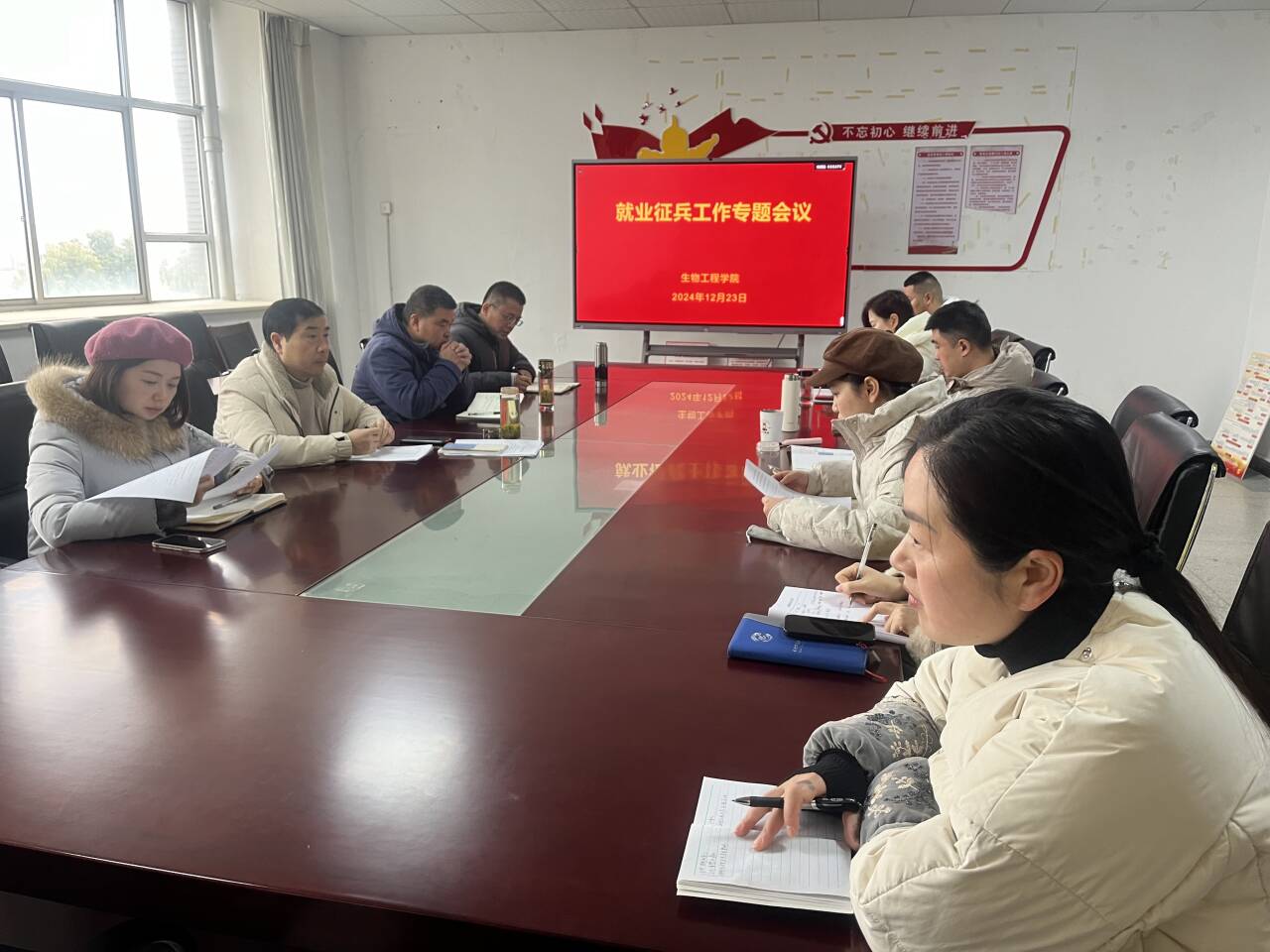 为全面总结2024年毕业生就业工作,进一步推进2025届毕业生就业和征兵工作,促进毕业生高质量充分就业,12月23日上午,beat365中国官方网站在生化楼A311室召开就业征兵工作专题会议。beat365中国官方网站党政班子成员、各科室负责人、各教研室主任、全体专职辅导员、25届毕业班辅导员出席,会议由党总支副书记(主持工作)慈龙保主持。