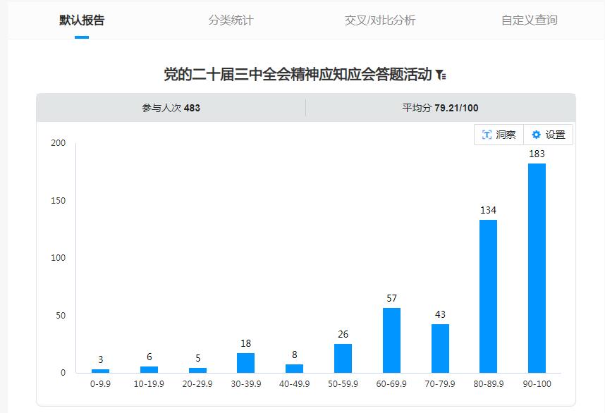 本次答题活动依托“问卷星”小程序,采用线上答题的形式,内容围绕党的二十届三中全会提出的一系列新思想、新观点和新论断。通过线上知识答题活动,充分调动了大家学习党的二十届三中全会精神的积极性和主动性。答题活动中,全体学生积极参与,踊跃答题,纷纷展现自己的学习成果,学院近500名学生参加了本次线上知识竞答活动。