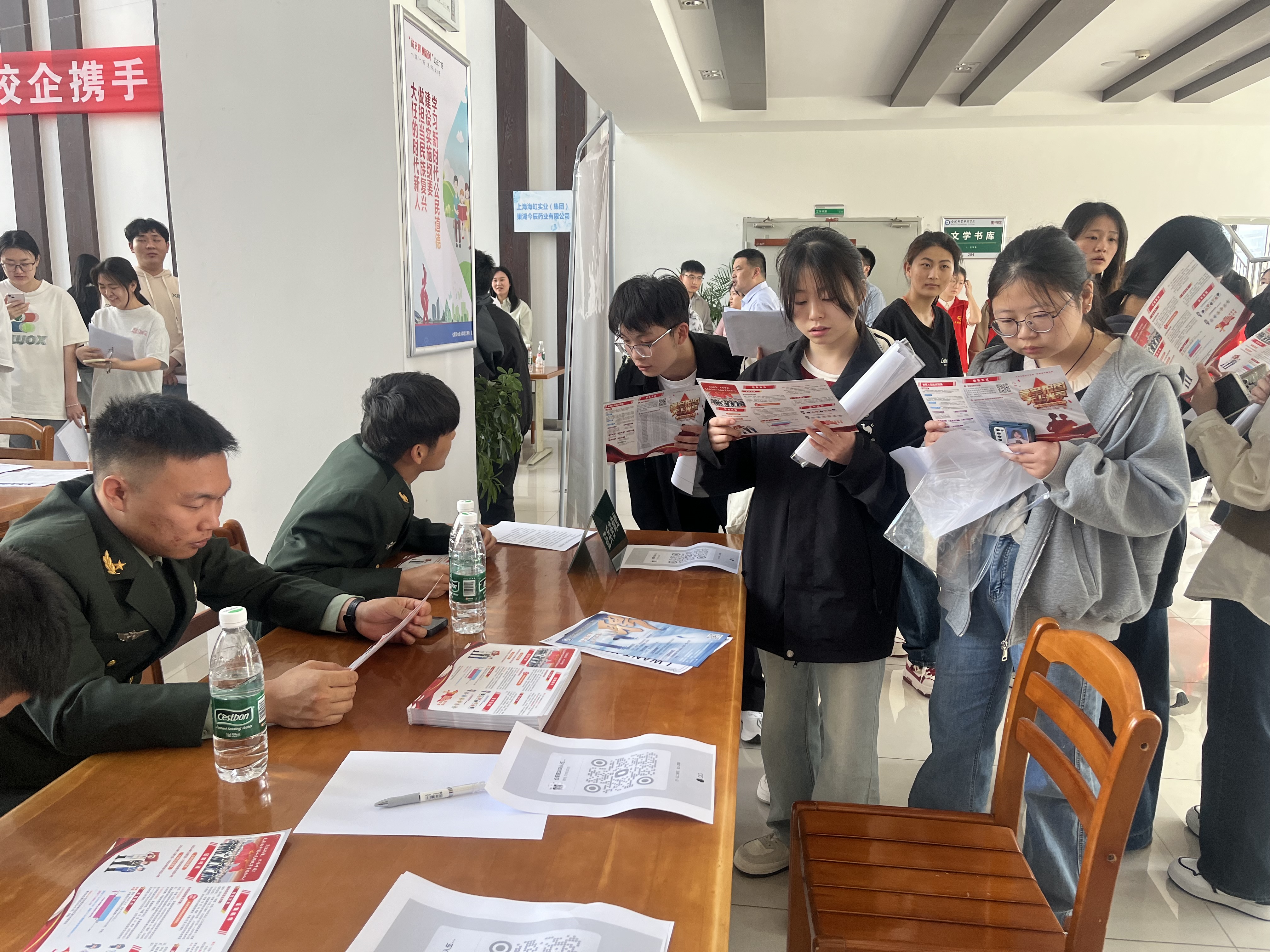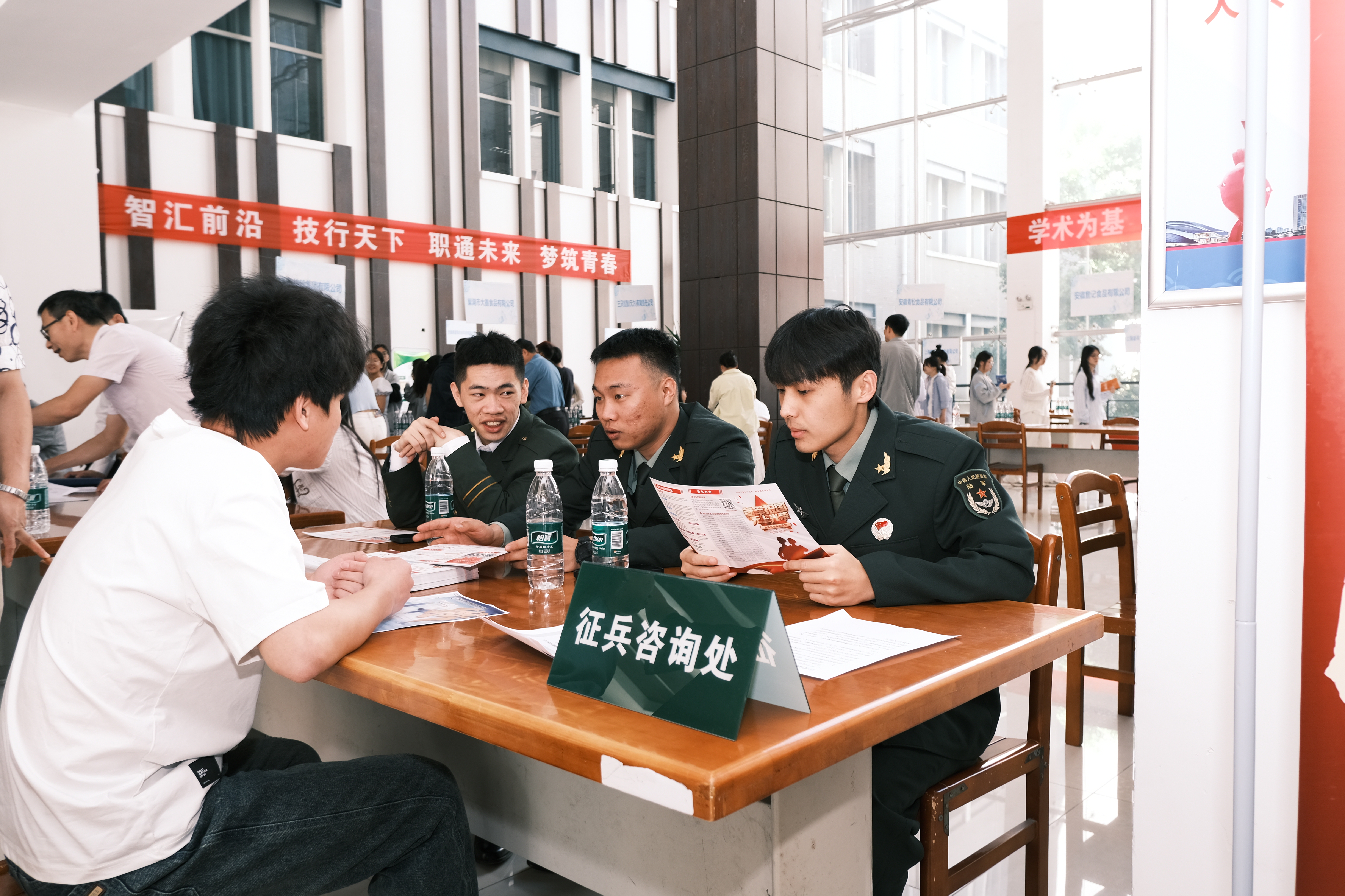 在活动现场,该院设置了征兵宣传咨询台,邀请了在校退役大学生担任讲解员,他们身穿军装,以亲身经历向同学们介绍军营生活,分享训练经历,展示军人风采。学生志愿者们身着统一服装,热情地向过往的同学发放宣传册,耐心解答他们关于征兵政策的疑问。活动现场火爆,不仅男生详细咨询了相关细节,今年很多女生也表现了浓厚情绪。