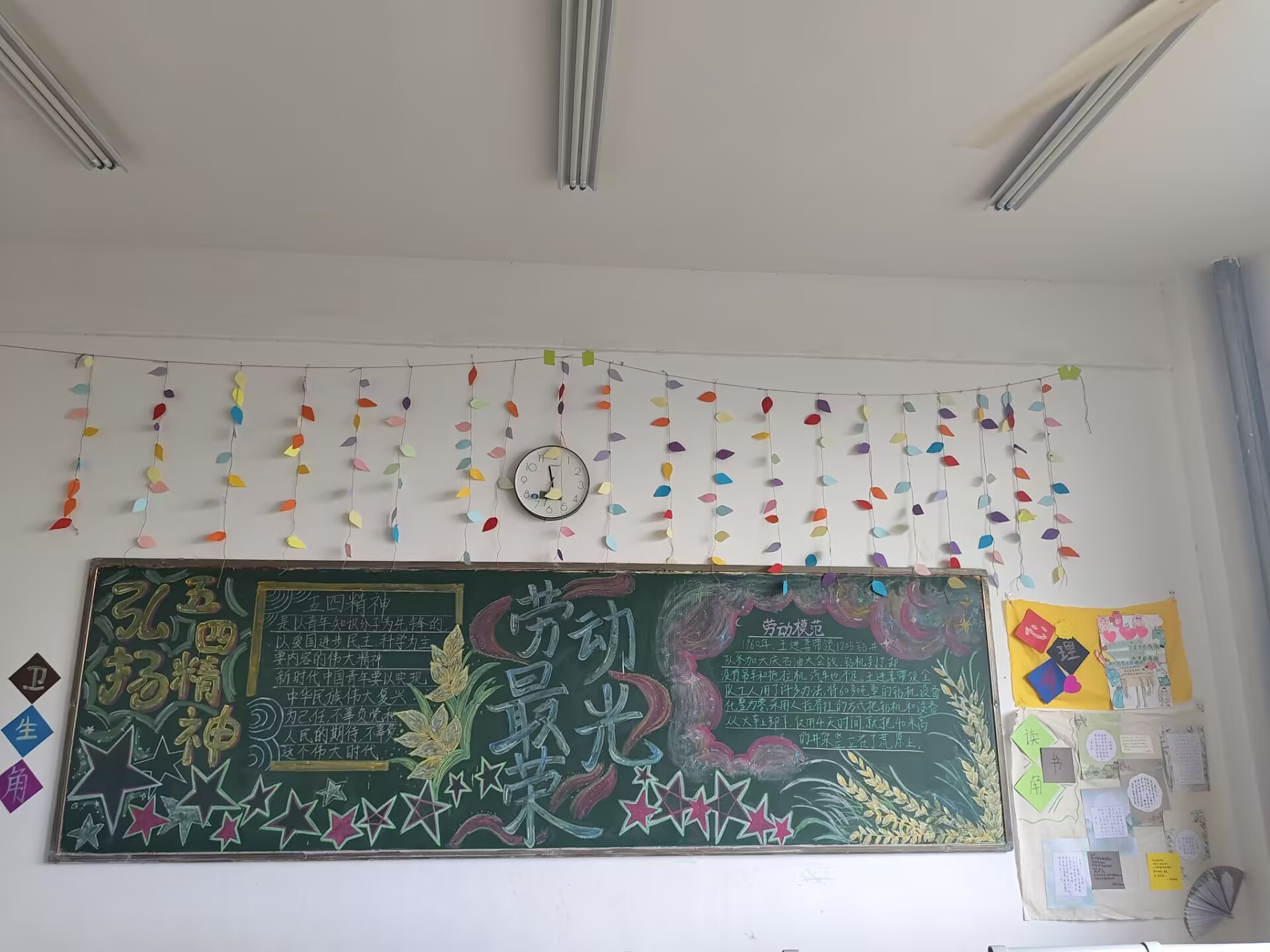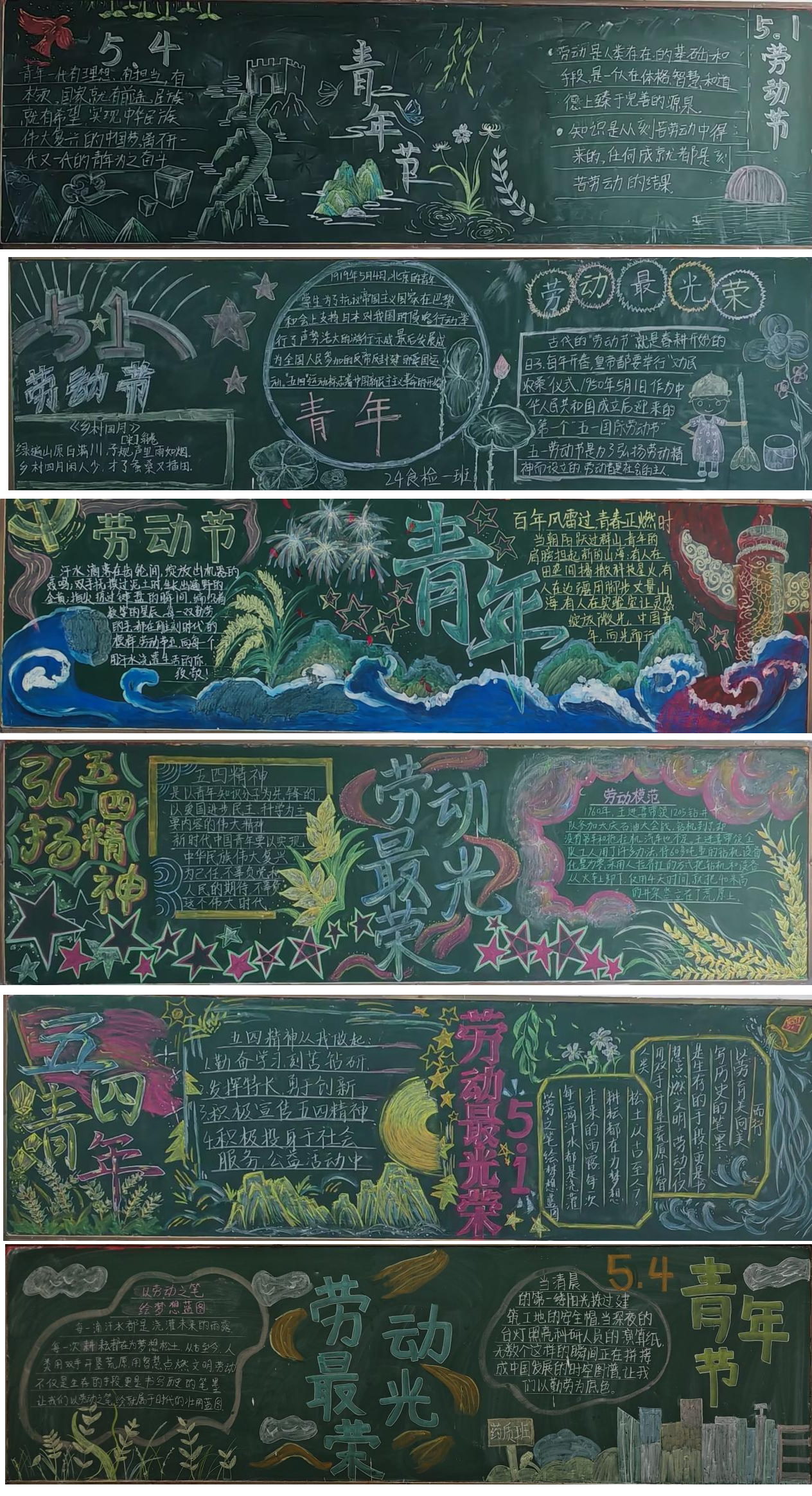 劳动教育活动以深入学习宣传劳模精神、劳动精神、工匠精神为核心,通过主题班会、劳动教育、教育主题黑板报等形式展开。beat365中国官方网站组织“劳动与成长”主题班会,讲述一线工作者扎根岗位、精益求精的故事,让学生能够直观感受劳动价值,在思想碰撞中深化对劳动的认知。各班结合专业特色,用粉笔在墨绿色黑板报上轻舞,一幅劳动赞歌正层层晕染开,板报左下角,蹲坐的身影正用彩色粉笔画出劳动剪影,刻画出劳动的模样。