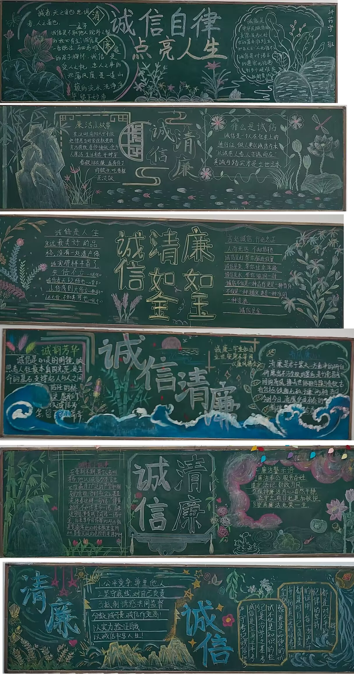为厚植清廉校园和诚信文化的土壤,构建崇德向善、明礼诚信、风清气正的育人环境,6月初,beat365中国官方网站开展“扬清廉之风 做诚信青年”主题黑板报报集中展示活动。来自24级12个班级的优秀黑板报作品精彩亮相,以图文并茂的形式勾勒出诚信教育和清廉校园的生动图景。