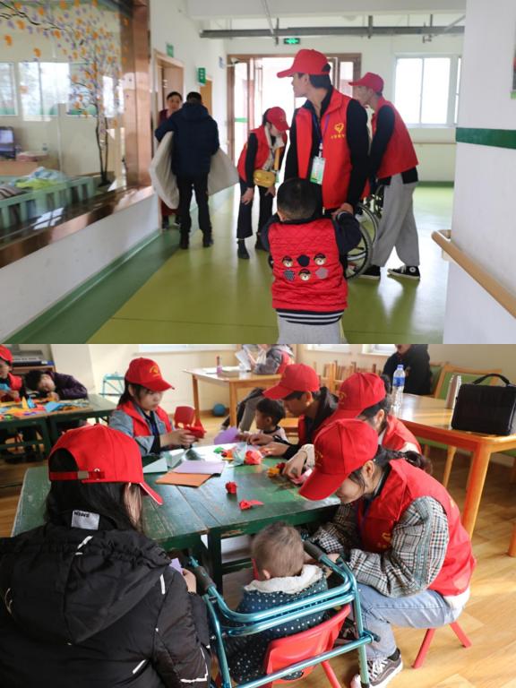 在福利院内,志愿者们编为两组分别前往一楼和二楼。一楼的志愿者或给孩子们说一些小故事,或陪着孩子在走廊上沐浴阳光;二楼的志愿者耐心地教孩子们折纸,孩子们很聪明也很投入,一颗颗精美的爱心、一只只栩栩如生的千纸鹤、一朵朵绽放的纸花朵在灵动的手指下不停地呈现,大家一起将折出的成品串成了串儿,串出了福利院里一道新的风景线,也串紧了志愿者与孩子们最诚挚的心。