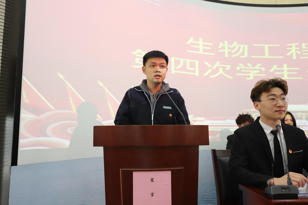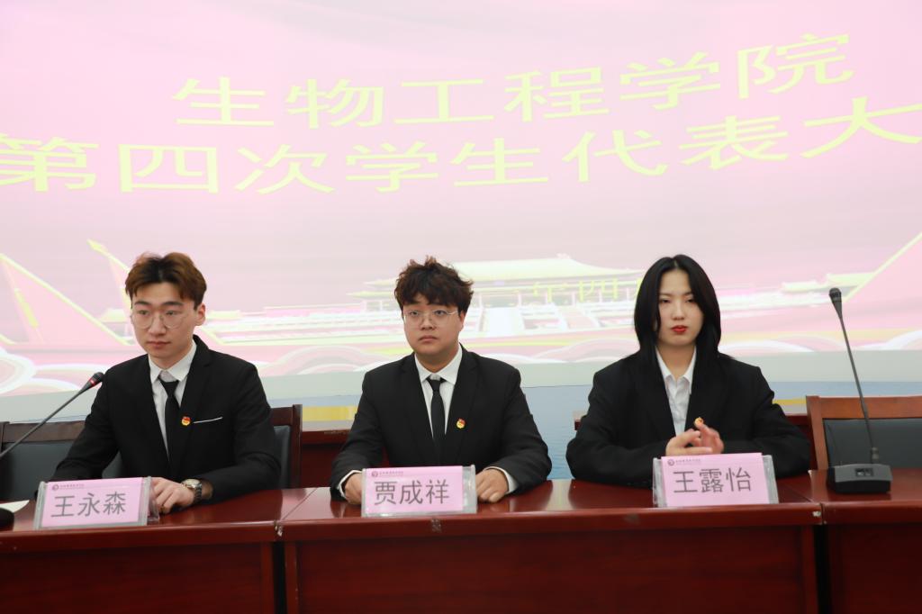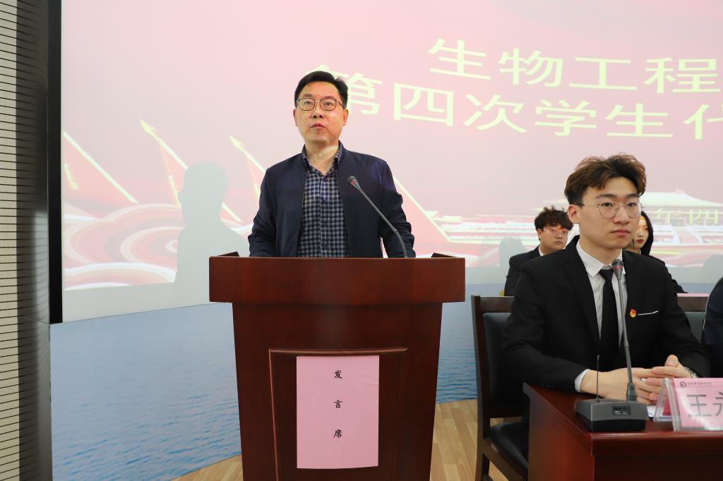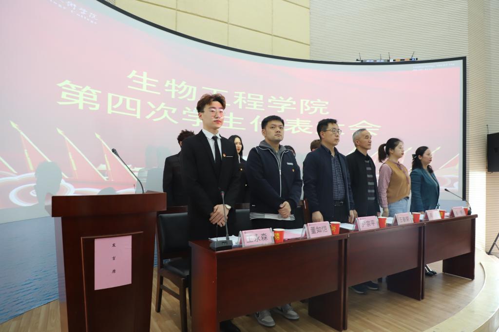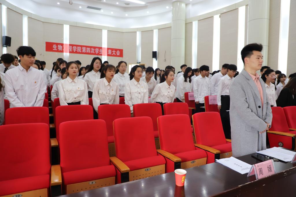 校学生处副处长尹宗平在大会上做重要讲话,并对学生代表提出三点希望:遵守承诺,不负众望;热心服务,积极工作;以身作则,做好榜样。要提高能力,奋起直追,不断完善自我,加强自身修养,坚持到底不放弃。最后,生物工程学院党总支副书记周婷致闭幕词,大会在庄严的团歌声中胜利闭幕。