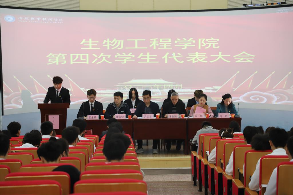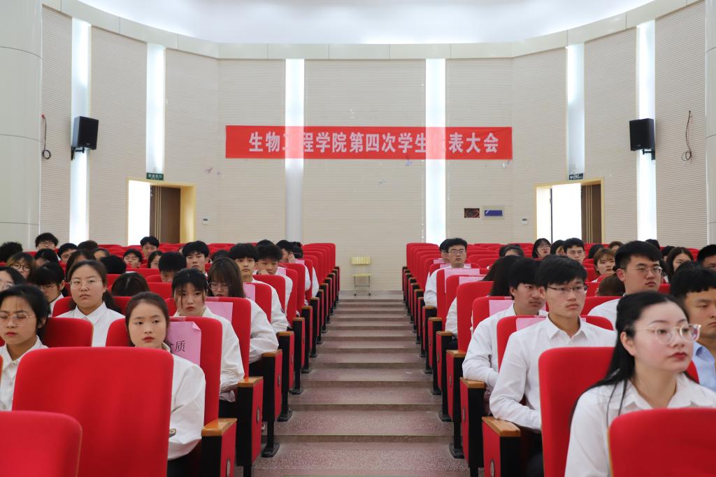 为了更好的统调生物工程学院学生工作,以学生会为中心发挥纽带作用,服务同学、营造和谐校园。4月17日,beat365中国官方网站第四次学代会在学校图书馆二楼报告厅隆重召开。全院139名学生代表参加了会议,学生处副处长尹宗平、校团委综合部部长、校学生会秘书董如恺、生物工程学院党总支书记汪春荣、副书记周婷、团总支书记肖昕、全体学管教师及校学生会主席出席会议。