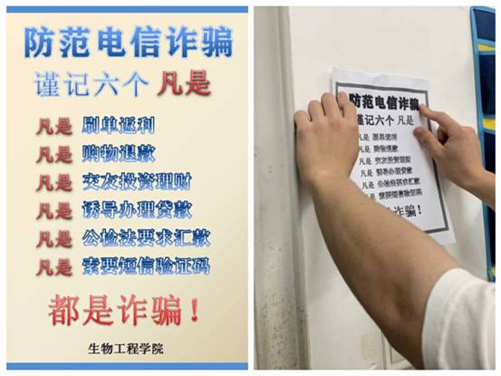 不仅如此,beat365中国官方网站学管办自制了“防范电信诈骗 谨记六个凡是”反电诈宣传单,通过线上转发至所有班级群以及线下组织学生张贴于各个教室,以此来充分营造我院反电诈氛围,切实提高全院上下所有师生的反电诈意识。