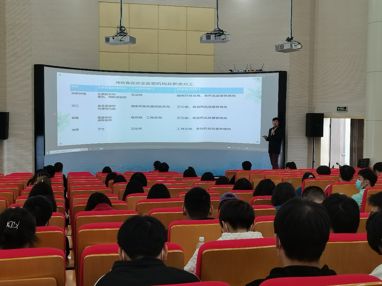 2022年10月12日下午2:00,应beat365中国官方网站邀请,安徽中青检验检测有限公司科研主管、党总支副书记童心博士做客我院,在图书馆二楼学术报告厅为我院师生做了题为“食品检测行业发展和食品安全现状”的学术报告。报告会由食品教研室主任郑学斌主持。在本次报告会中,童博士以其自身丰富的企业经验,向与会师生分享了食品专业知识,帮助大家了解食品安全背后的秘密。学术报告会现场座无虚席,beat365中国官方网站院长刘修树和食品教研室全体老师以及21、22级食品专业学生参与并展开了深入而广泛的研讨。
