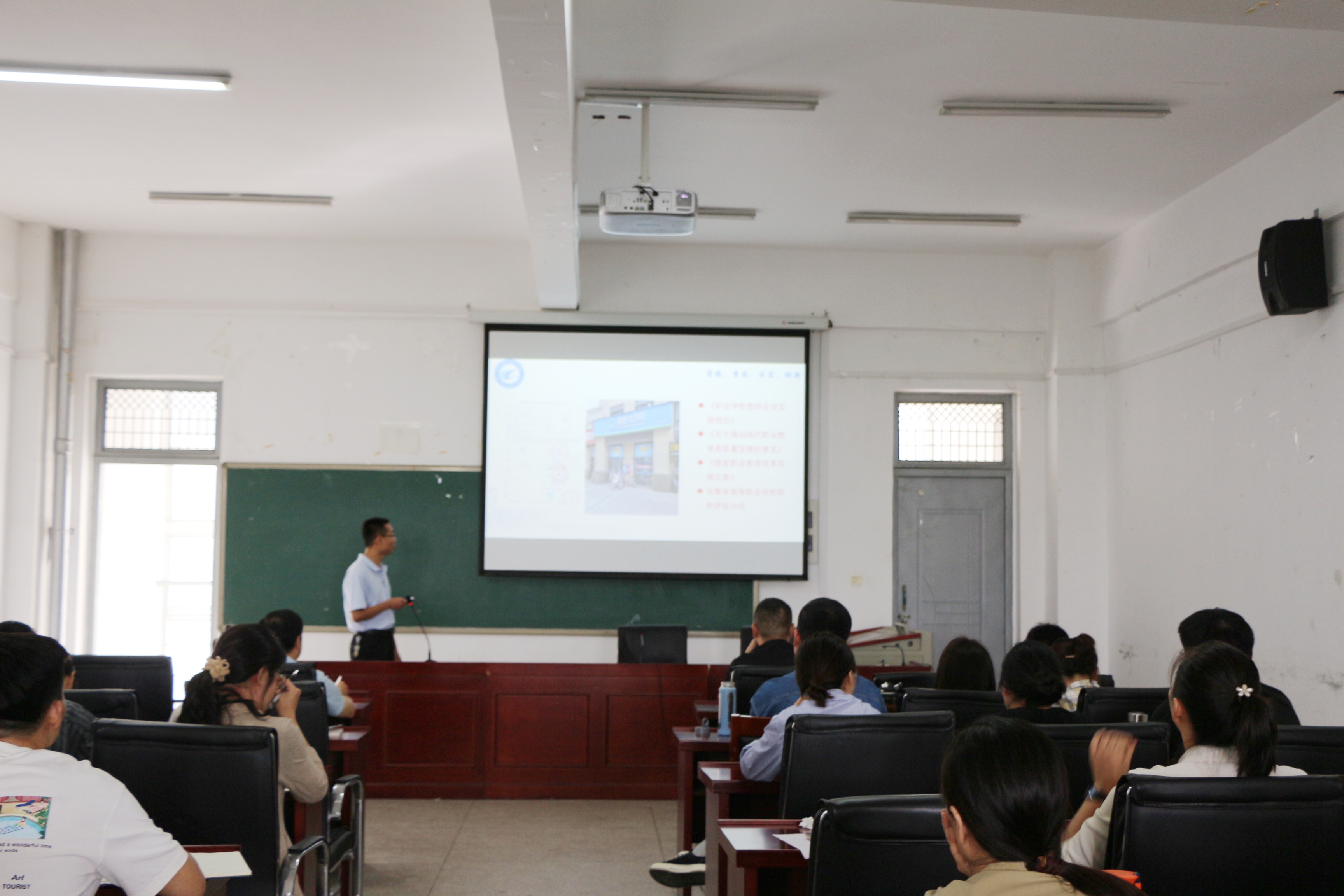 此次交流分享会分别由参加中青年骨干教师能力提升培训、青年教师教学能力提升专题培训、企业实践以及2022年安徽高职课程实施能力提升国培项目等4个项目的12名教师代表汇报分享。教师们从实践学习内容、收获与体会、反思与建议等方面进行汇报分享。