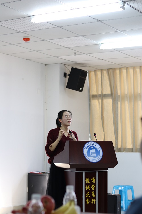 第二位交流的是舒慧珍师姐。师姐以“早点失败,早点成功”开头,告诉研一的同学要尽早进实验室。并要在师兄师姐中学习 ,找课题相同相似的师兄师姐,有礼貌、勤奋上进地把事情放到前面去做 。其次,师姐讲到读文献首先要精读,并告诫同学们要适度使用翻译软件,找到好的学习伙伴也会达到事半功倍的效果。最后师姐建议同学们要好好学习英语,提高自己的创新能力。