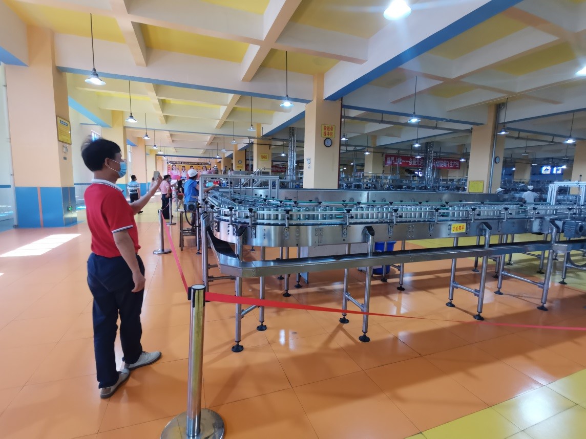 在袁颖书记和赵波总经理的引导下,全体人员文明有序地对生产车间和生产线进行逐一参观。通过袁书记的介绍,大家了解到椰树集团前身为海口罐头厂,建于1956年,是中国饮料工业十强企业之一,现有职工4000多人,具有世界一流的生产工艺和大规模自动化生产能力,是中国饮料行业唯一一家同时有两种产品荣获“中国名牌”称号的企业,也是唯一有四个饮品荣登国宴殿堂的企业。