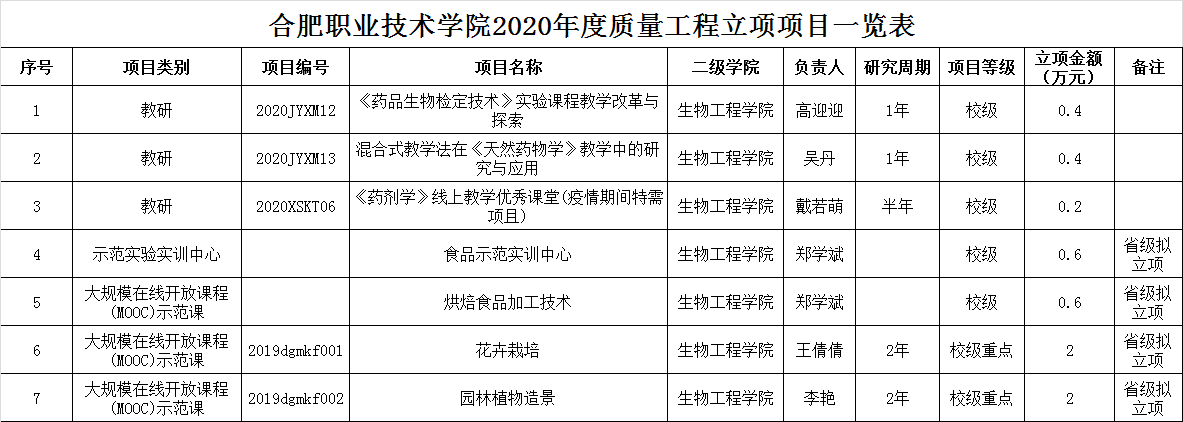 合肥职业技术学院2020年度质量工程立项项目一览表.xls