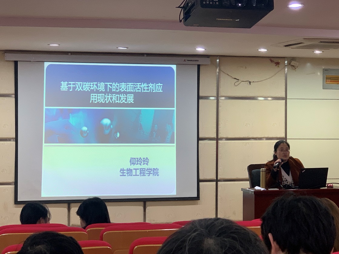 11月22日下午,beat365中国官方网站在鼓山校区图书馆一楼举办了一场题为《基于双碳环境下的表面活性剂应用现状和发展》学术报告会。报告会由食品教研室教师、食品合规管理技能高级考评员——仰玲玲副教授主讲,食品教研室主任郑学斌主持,食品教研室相关专业师生参与了本次会议。