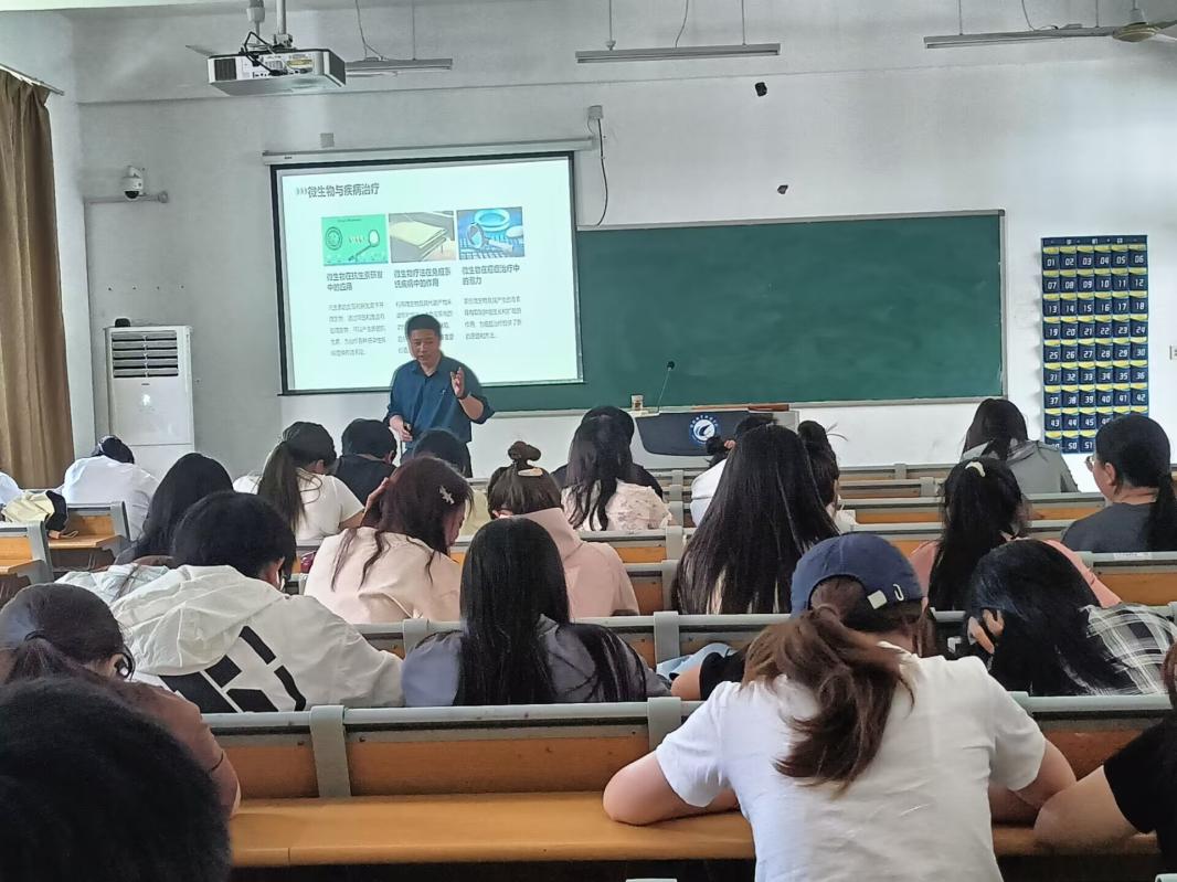 讲座伊始,郑学斌教授以“谁是地球之王”这一引人深思的问题作为开场,带领师生们进入了一个充满神秘与魅力的微观生物世界。他首先详细阐述了微生物在自然环境中的重要作用,如改善食物品质、促进人体健康、肥沃土壤以及保持环境清洁等。同时,他也指出了微生物可能带来的危害,如人畜流行的病毒以及食物变质等问题。