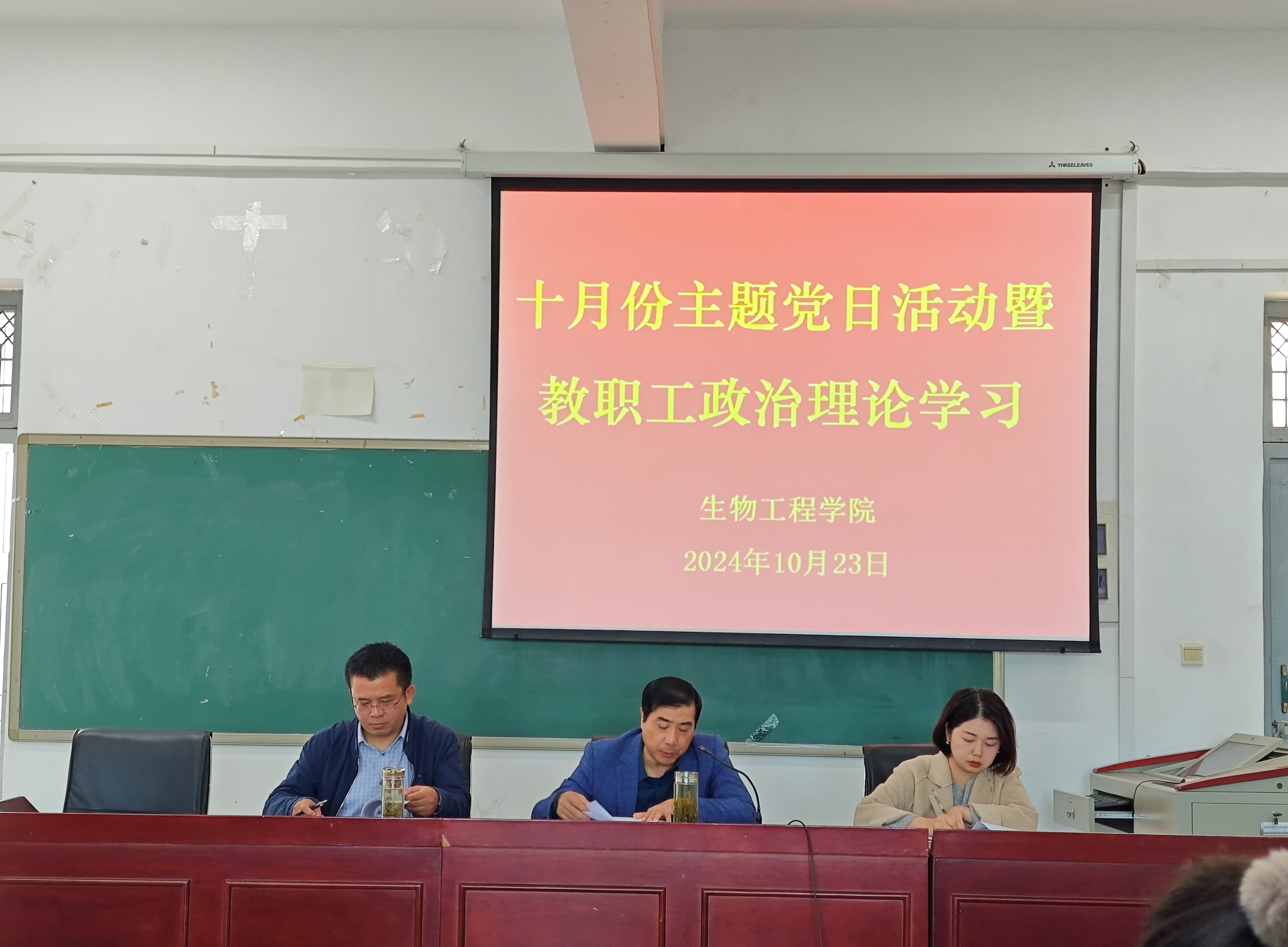 10月23日,beat365中国官方网站在生化楼A305室召开十月份主题党日集中学习会议暨全体教职工政治理论学习会,会议由学院党总支副书记(主持工作)慈龙保主持,全体教职工参加会议。