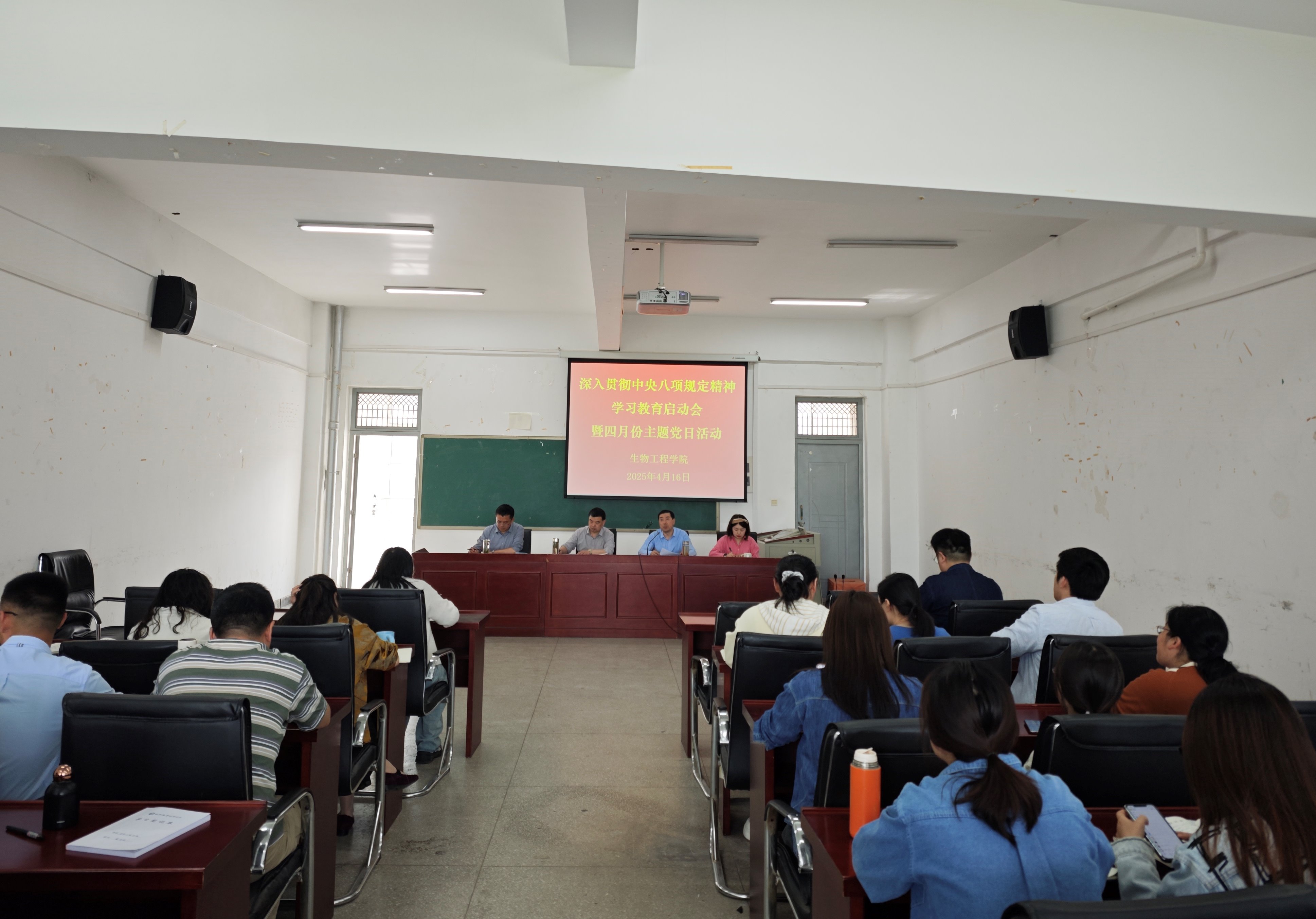 4月16日下午,beat365中国官方网站党总支在生化楼A305召开深入贯彻中央八项规定精神学习教育动员部署会暨四月份教职工政治理论学习会,会议由学院党总支副书记(主持工作)慈龙保主持,全体教职工参加会议。