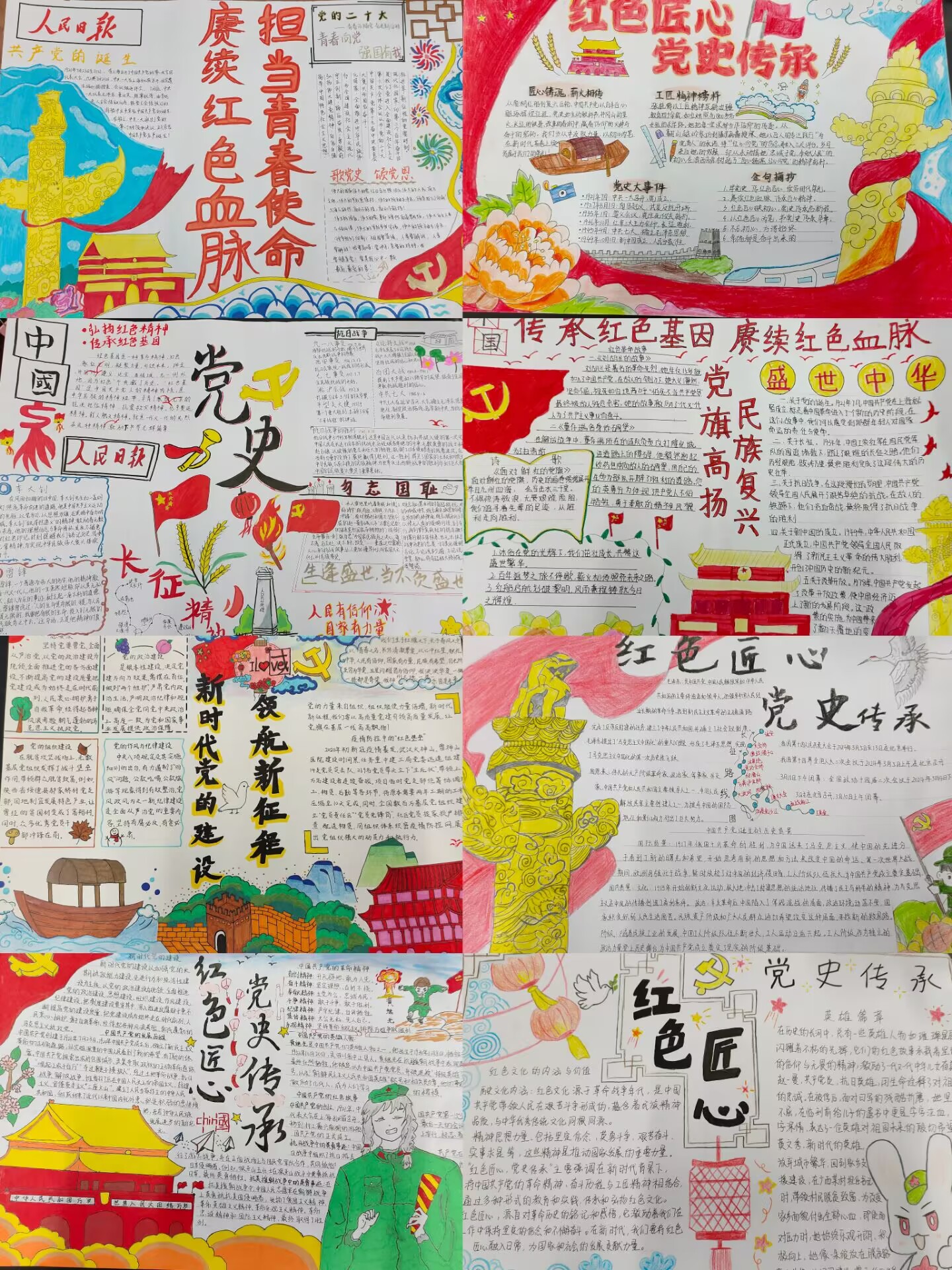 活动启动后,入党积极分子们积极响应,纷纷投入到手抄报的创作中。他们以党的历史发展为主线,精心设计、用心绘制通过生动的图片和文字,展现了中国共产党在不同历史阶段的使命担当和卓越成就;在创作过程中,入党积极分子们充分发挥自己的想象力和创造力,运用多种绘画技巧和表现形式查阅大量党史资料,深入挖掘红色故事,力求将党史知识准确、生动地呈现出来精心版面设计,彩鲜艳的图案和文字,使手抄报不仅具有教育意义,更成为了一件件精美的艺术作品。