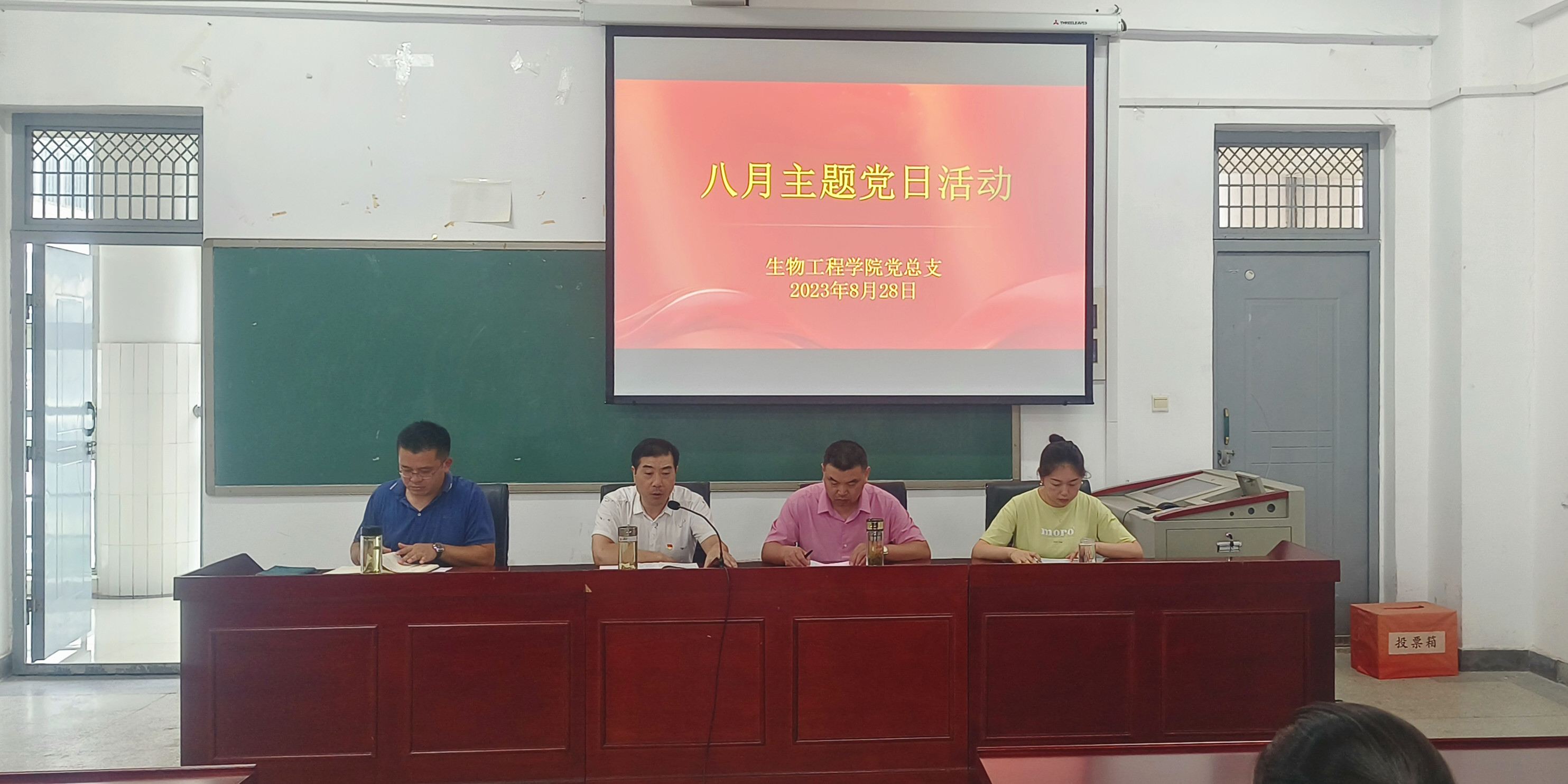 为扎实推进学习贯彻习近平新时代中国特色社会主义思想主题教育,深入学习宣传贯彻党的二十大精神,根据学校党委安排部署,结合工作实际,beat365中国官方网站党总支于8月28日在生化楼A305组织开展8月份主题党日活动。会议由该院党总支副书记(主持工作)慈龙保主持,全体党员参加会议。