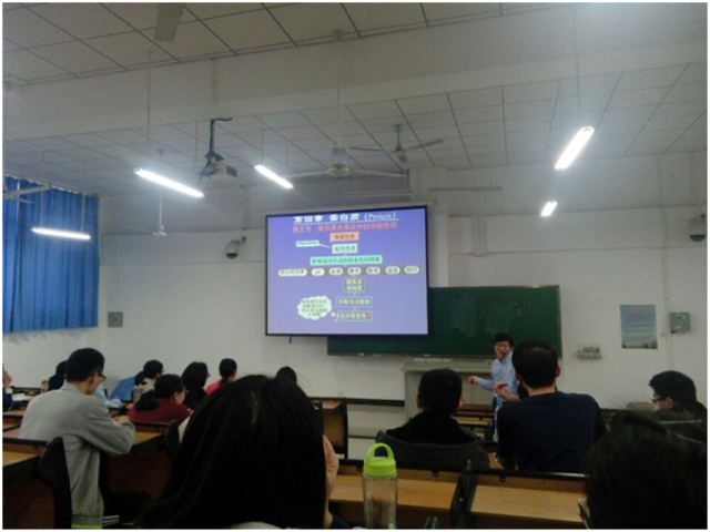 2016年1月18日-20日,华中农业大学食品科学技术学院李斌教授应邀来365官网为365官网学生讲授《食品化学》课程,该课程与食品质量与安全专业相关课程紧密相关。讲授开始,教室座无虚席,学生与老师互动积极,课堂氛围活跃。