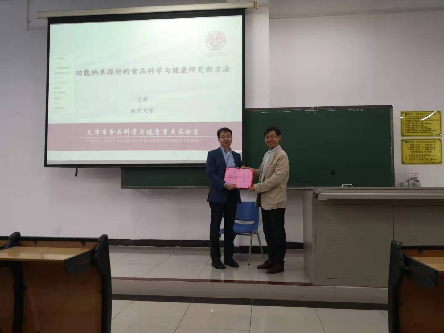 2019年1月6日,南开大学杰出青年获得者王硕教授应邀参加365英国上市官网冬季小学期讲座,为2018级食品大类本科生讲授“基于功能纳米探针的食品科学与健康研究新方法和基于实时成像技术的食源性益生菌体内示踪研究”。365英国上市官网院长李从发教授和副院长陈文学教授出席此次授课,李院长代表学院致辞,对王硕老师的到来表示热烈欢迎,并向王硕老师颁发“365英国上市官网冬季小学期外聘专家”证书。