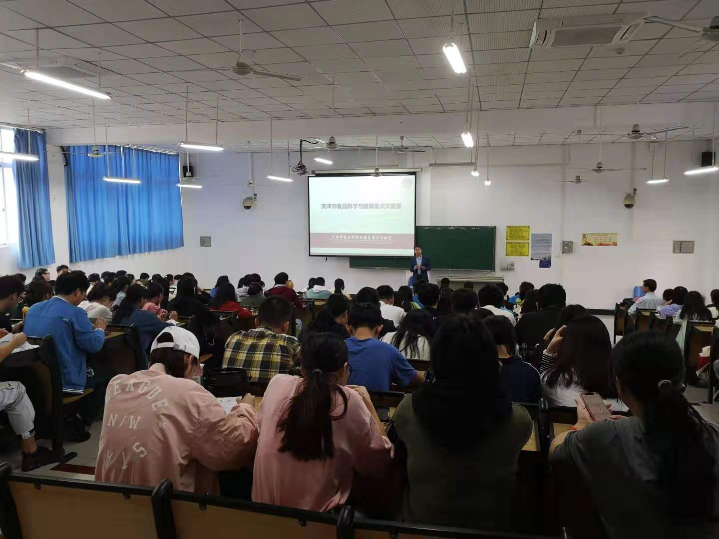 王硕教授围绕功能纳米材料在食品安全检测中的应用,重点讲授了:1)基于功能框架材料的高效富集检测技术;2)基于功能纳米材料的免疫快速检测技术;3)基于发光纳米材料的光学传感技术;4)基于贵金属纳米材料的表面增强拉曼检测技术;5)基于上转换纳米材料的电化学传感技术;6)基于自组装仿生纳米材料的压电传感技术。不仅如此,王老师还结合纳米材料在食品检测中的研究现状,预测了未来该领域3-5年的发展前景。王硕教授的讲课内容十分丰富,由浅入深,层层递进,图文并茂,新颖有趣,在讲授的过程中启发学生思考,调动学生的批判性思维,课堂氛围活跃,取得了良好的效果。报告结束时,同学们对王老师的精彩讲授报以热烈的掌声,授课取得圆满成功。