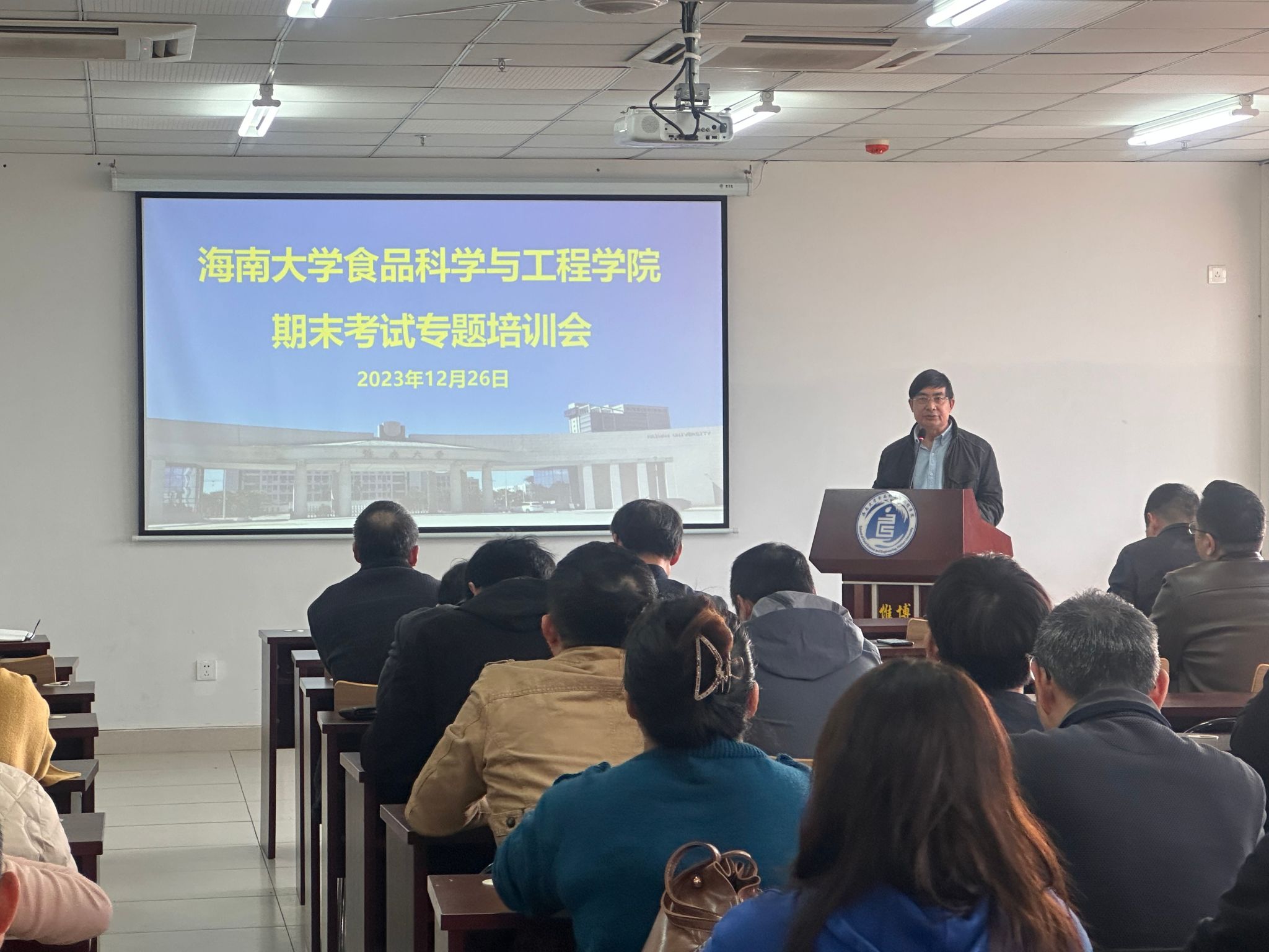 陈文学副院长传达学校期末考试相关文件精神,要求监考老师务必提高认识,认真履行监考职责,严格按照文件和规章制度细则完成学校各项考试相关工作,确保高质量完成本学期的期末考试监考工作。另外,还强调一定要《按照365英国上市官网理论课程考试工作实施细则》规范阅卷,顺利完成本学期教学工作。