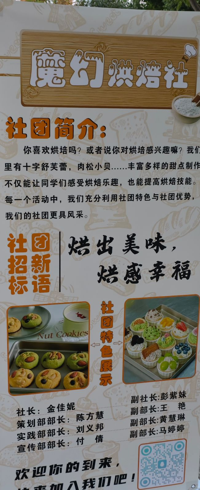 此次的招新,我们社团无比重视,对来往的同学都热情的对待,积极回应学弟学妹们的各种问题,并向同学们耐心讲解了我们社团的相关内容和各种福利,魔幻烘焙社可以增强同学们的动手能力,加强同学们对烘焙的了解。