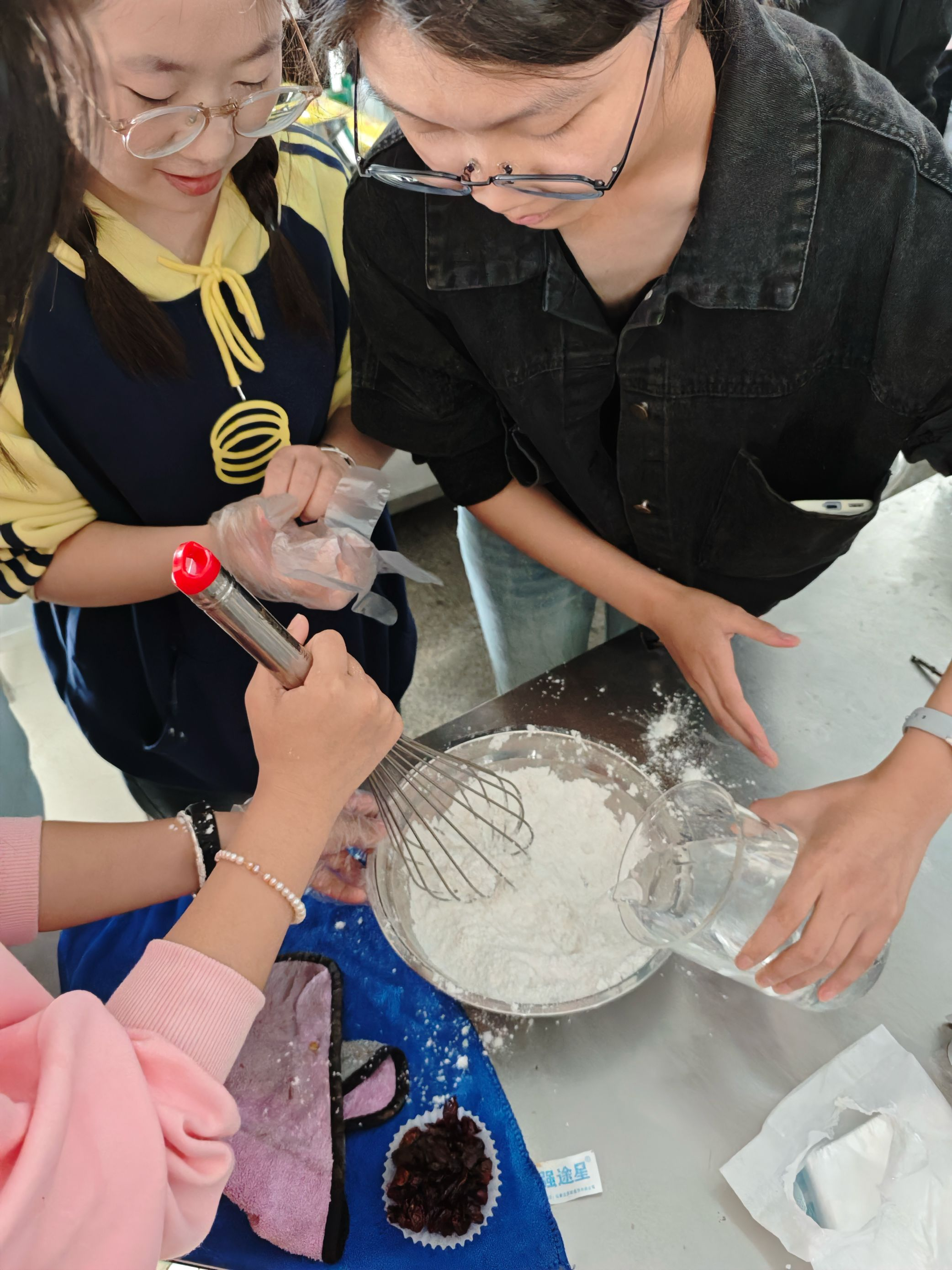 10月9日,魔幻烘焙社在一食堂三楼食品实训室开展“九九重阳 温情相伴”重阳糕制作活动。活动当天,实训室内洋溢着浓浓的节日气氛。桌子上摆放着制作重阳糕所需的糯米粉、果干、红枣等食材,以及制作工具。社团负责同学首先向大家介绍了重阳节的由来和传统习俗,让大家对这一传统节日有了更深入的了解。随后,大家便迫不及待地开始制作起了重阳糕。在制作过程中,大家各司其职、互帮互助,有的揉面、有的包馅、有的蒸糕……每个人都全神贯注地投入到自己的工作中,现场充满欢声笑语。经过一番努力,一个个香甜可口的重阳糕终于呈现在大家面前。