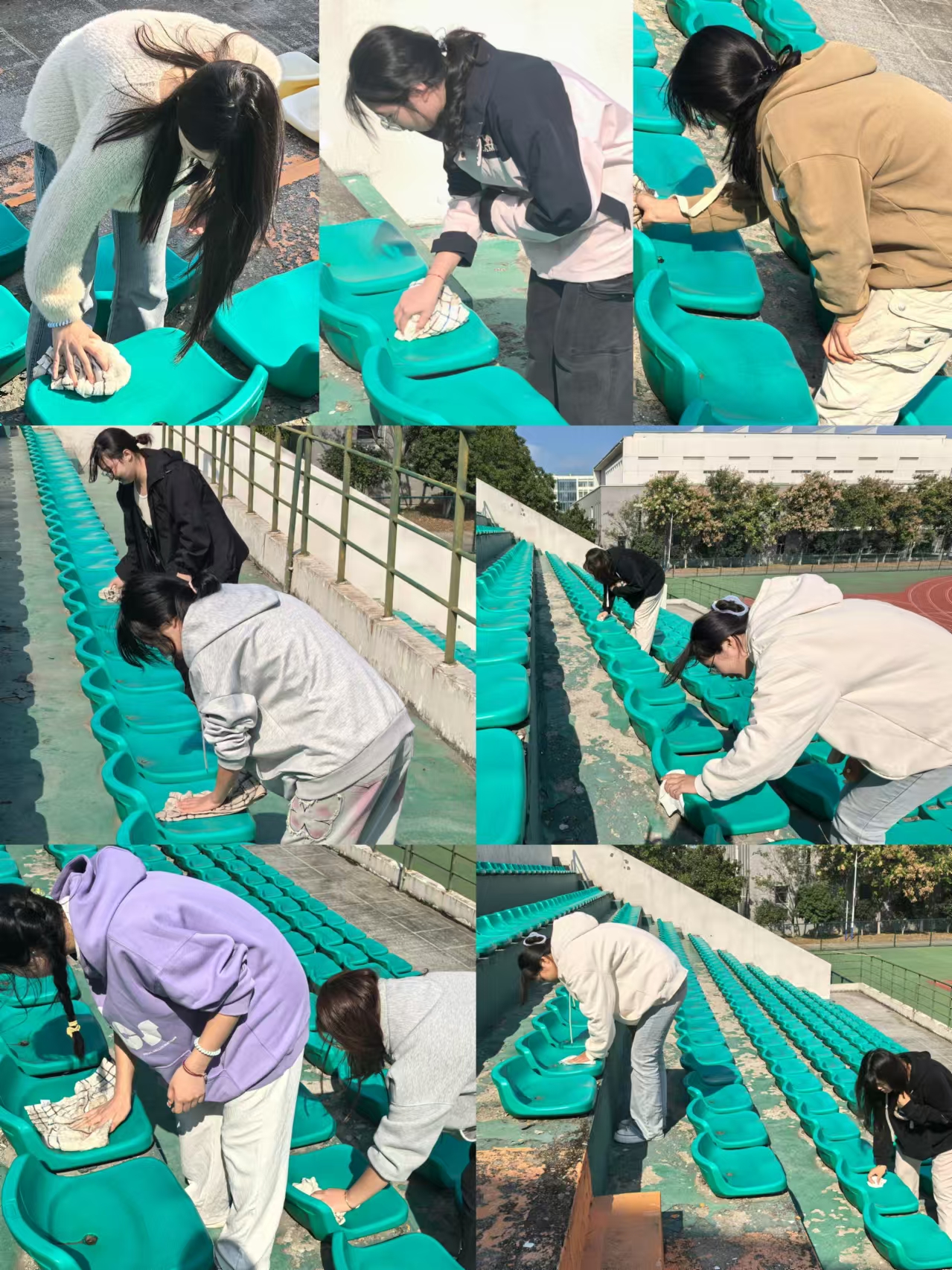 同学们热情高涨,不怕脏、不怕累,认真细致地清理着每一个角落。他们有的清扫地面上的垃圾和杂物,有的擦拭座椅上的灰尘,大家齐心协力,分工合作,观众台在他们的努力下焕然一新。此次清扫活动,不仅为运动会的顺利开展做好了充分准备,也展现了beat365中国官方网站学生志愿者的奉献精神与责任感。他们用实际行动践行着志愿服务的精神,为营造一个整洁、有序的校园环境贡献了自己的力量。