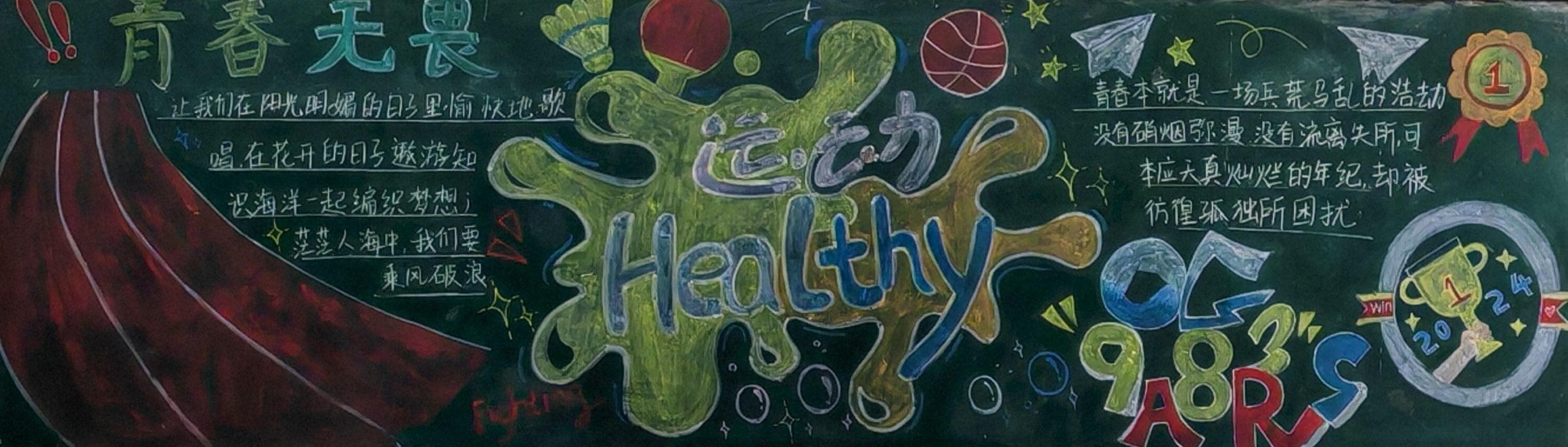 运动与健康是这次黑板报的主题。所以可以采用运动相关的图案,如跑道等,配以亮眼的标语,比如健康,活力类。辅以鲜明的颜色对比,比如金色代表胜利,橙色代表活力。整体感官上清晰,信息一目了然,鼓励大家积极参与运动,享受健康生活。——24药学4班