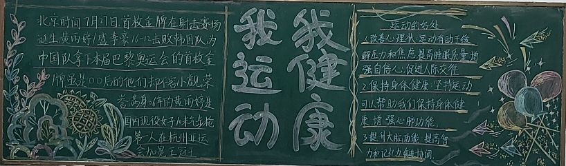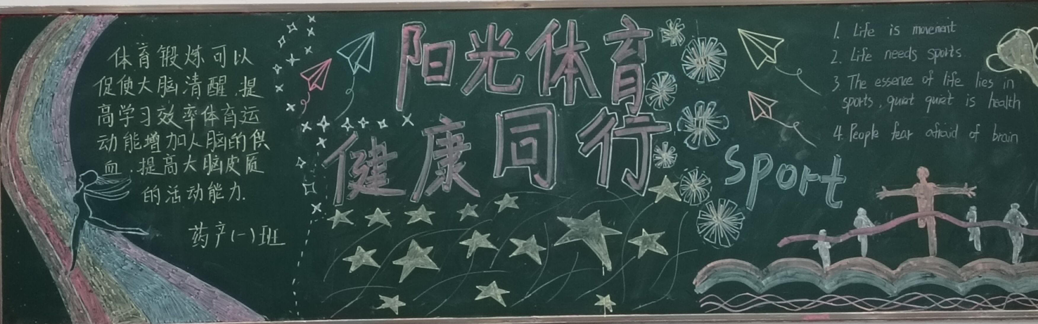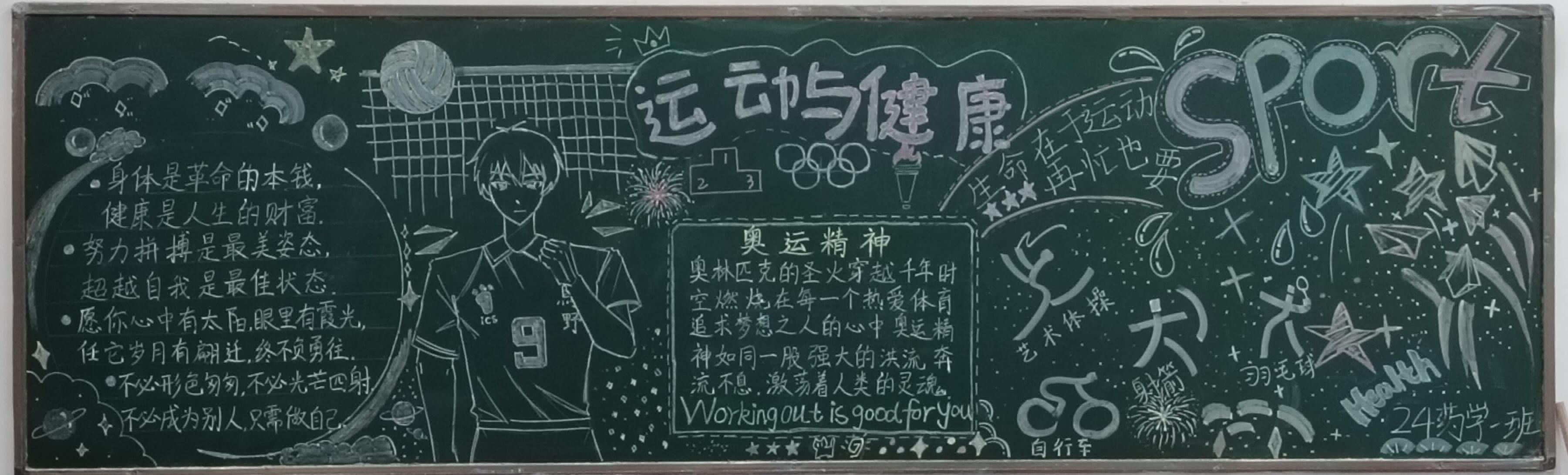 在当今快节奏的生活,健康已成为人们日益增长的话题,运动的重要性不言而喻,为了普及运动知识,我们特设本期"运动与健康" 的黑板报,旨在通过生动、直观的形式,激发大家对运动的兴趣, 提高健康意识。——24药学2班