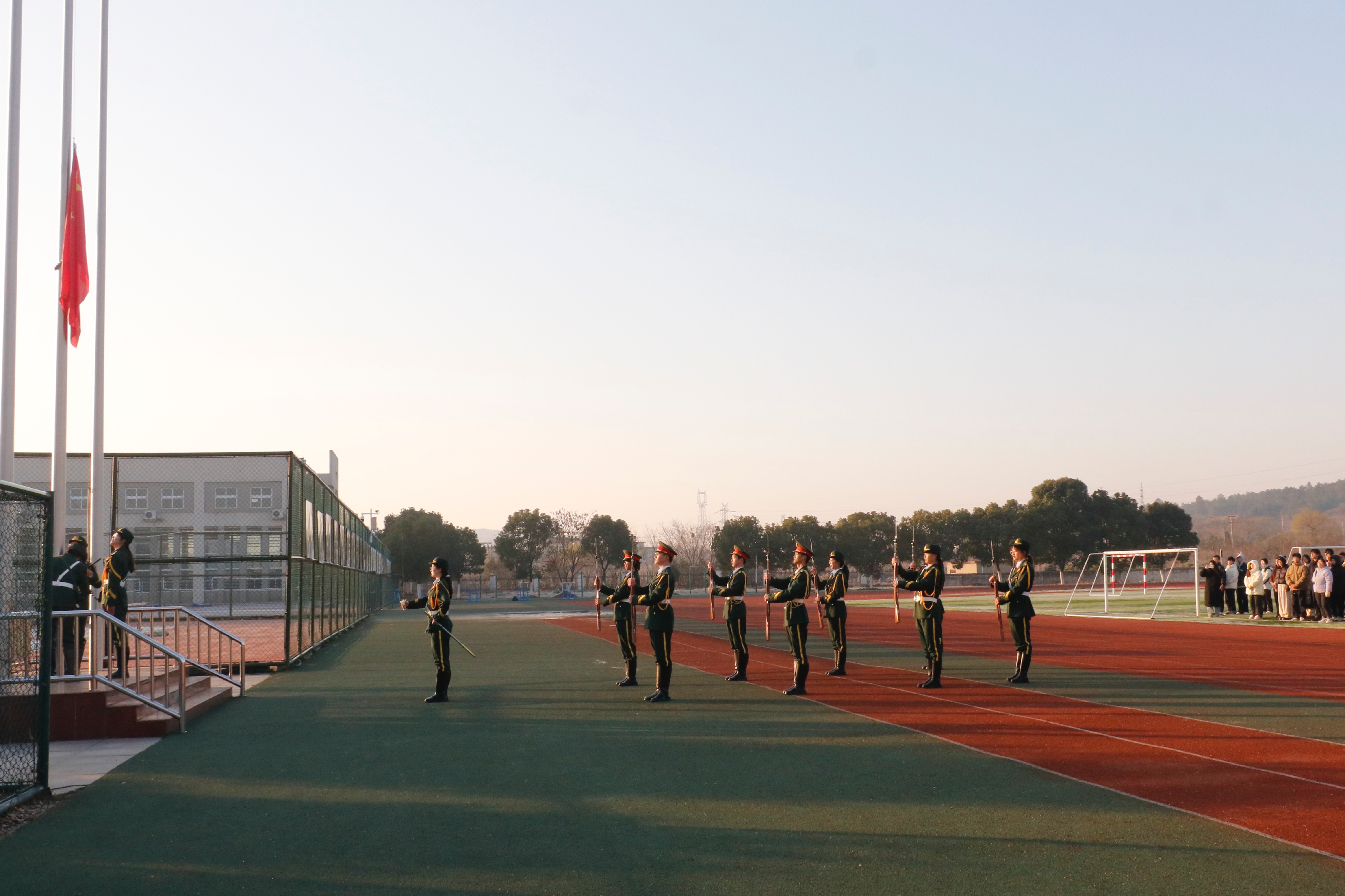 在师生的热切注目下,国旗护卫队队员们迎着晨曦,迈着整齐划一的步伐,护送五星红旗缓缓入场。上午八时整,伴随着庄严的国歌响起,鲜艳的五星红旗冉冉升起,师生肃立齐唱国歌,向伟大的祖国表达最深沉、最诚挚的敬意。