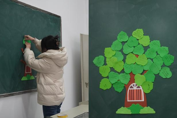 春天的愿望树环节每位同学在“树叶”上写下自己的心愿,并将其贴在一棵大树的上。随着一片片树叶的增添,原本光秃秃的树枝逐渐变得枝繁叶茂,象征希望与梦想的愿望树在大家的共同努力下焕发出勃勃生机。接着,在心理老师的引导下,同学们进行了八分钟的冥想体验。伴随着轻柔的音乐,大家闭上眼睛,放松身心,感受内心的平静与安宁。