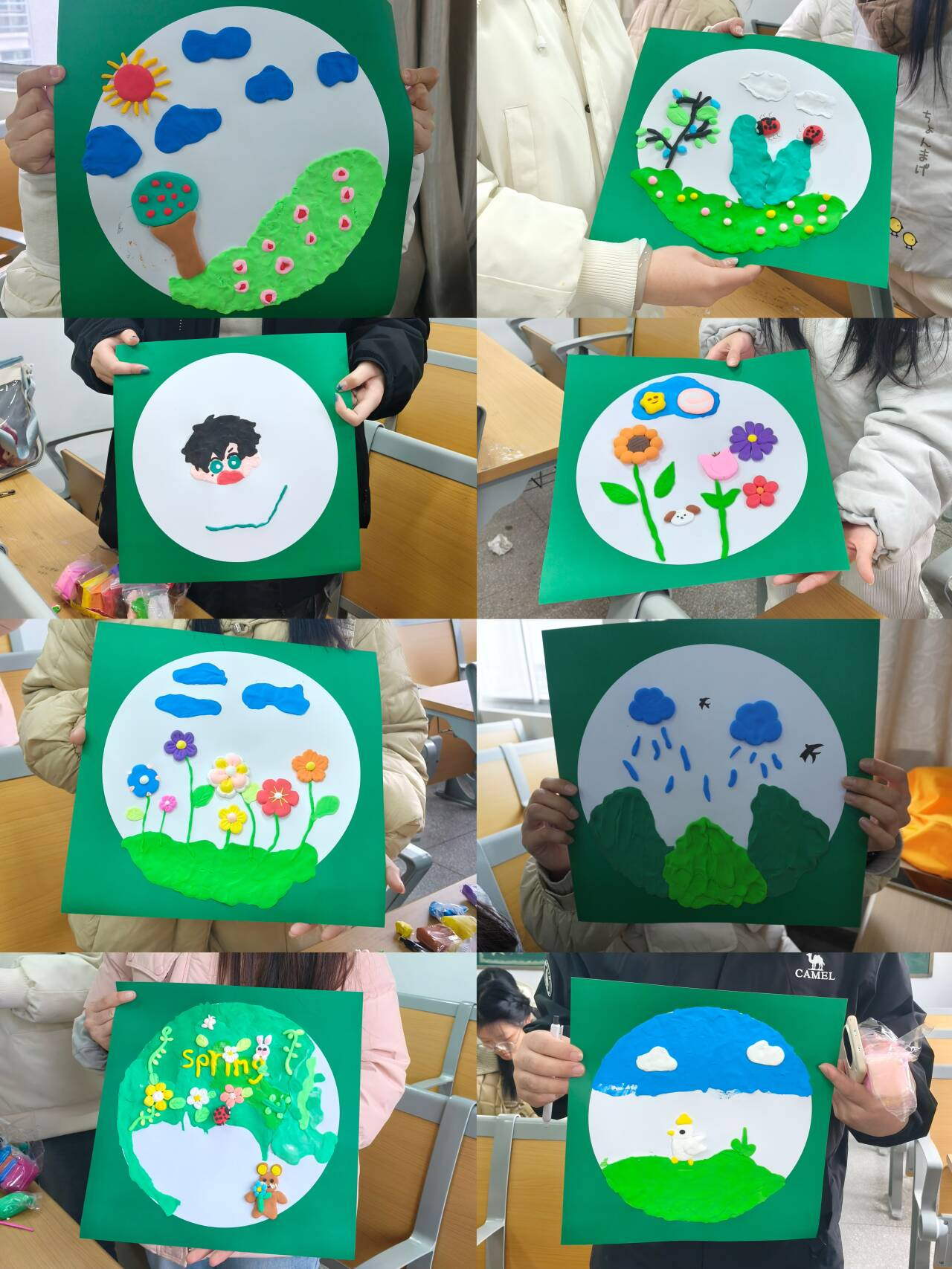 活动的最后,同学们以惊蛰为主题,用粘土在纸上进行创意作画。大家充分发挥想象力和创造力,将心中对春天的理解和感悟融入到作品中。一幅幅充满创意的画作,不仅展现了同学们的艺术才华,更体现了他们对生命的热爱和对未来的憧憬。
