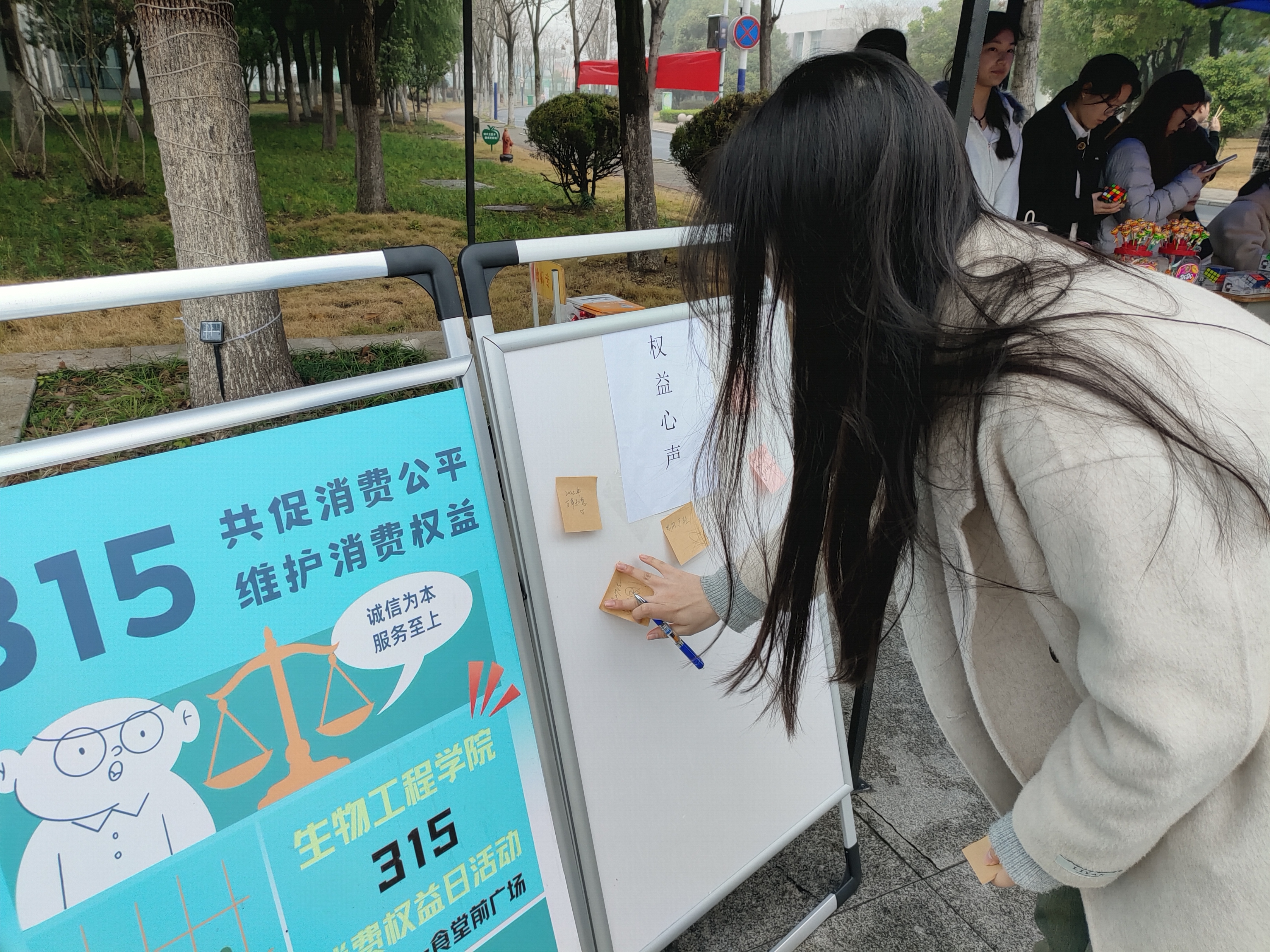 活动当日,内容丰富多样,分为主题展示和趣味互动两部分,在主题展示中,利用展板展示维权案例并且设置“权益心声墙”,收集了beat365中国官方网站同学们的消费经历。在活动现场,我们设立了一些趣味活动和同学们进行互动,如“权益知识问答”、“魔方竞速挑战”、“留言兑奖”等。来自全校近300名同学们积极踊跃参加,通过答题、完成魔方还原或在“心声墙”留言等兑换了棒棒糖、可乐、布偶等奖品。