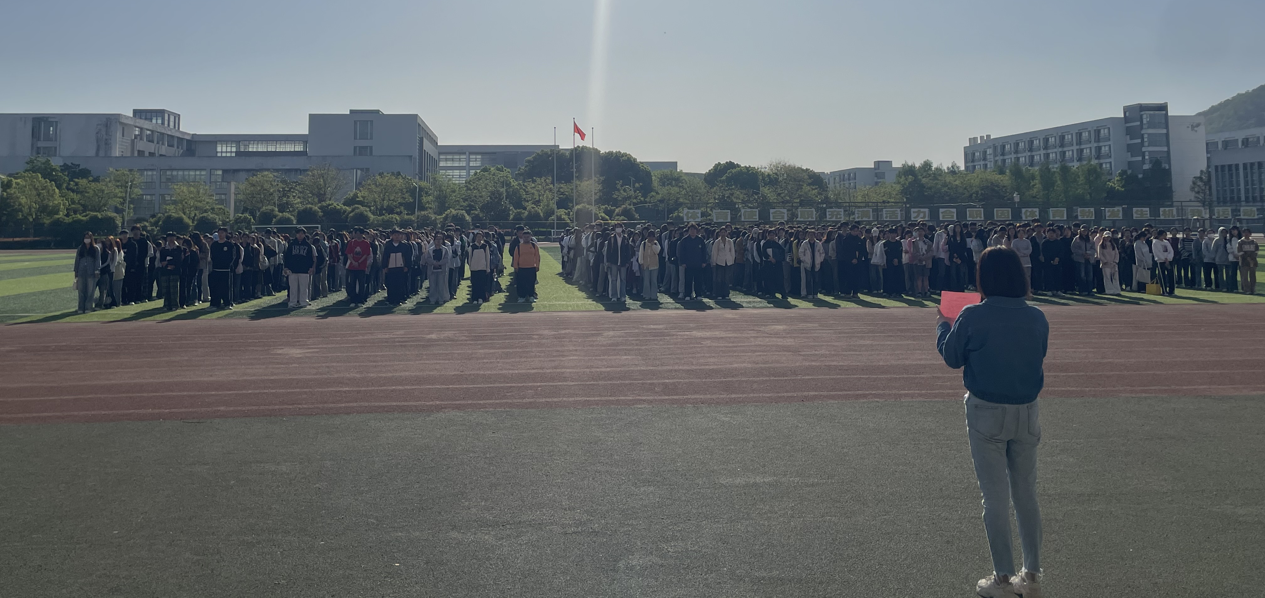 升旗仪式伊始,现场气氛庄严肃穆。八点整,国旗护卫队成员迈着整齐有力的步伐,步入仪式现场。随着国歌奏响,五星红旗徐徐升起,全体师生面向国旗行注目礼,表达对祖国的无限热爱和崇高敬意。