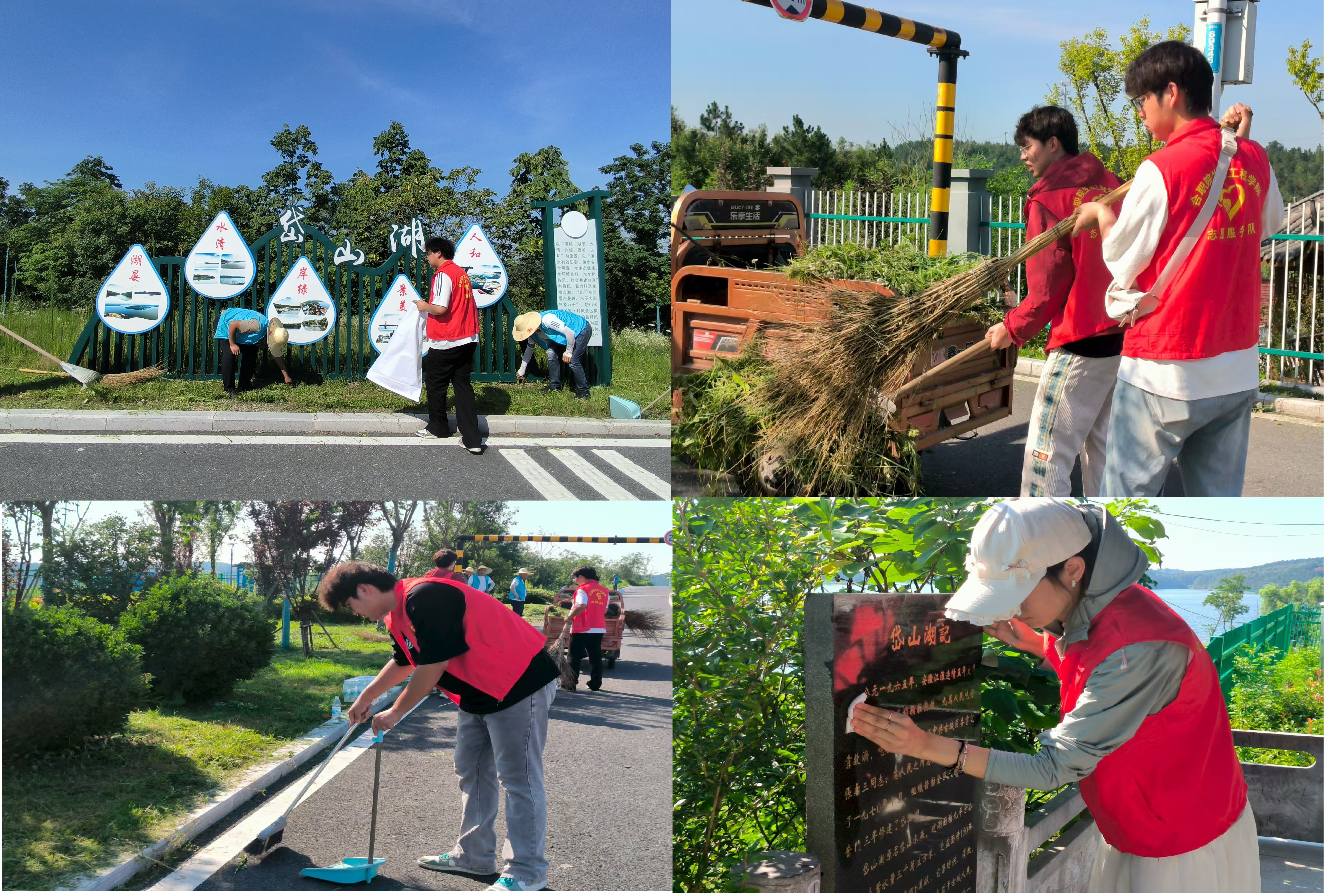 为深入学习贯彻习近平生态文明思想,7月2日,实践团队走进岱山湖水库,开启了一场沉浸式水利工程环境保护之旅。实践队从实地考察水质入手,开启此次意义非凡的实践之旅。队员们严格依照规范流程完成湖水采样工作,并对水样进行了现场检验,在许睿老师的指导下,队员们有序开展了水体有机污染(COD)、酸碱度(pH)和溶解氧(DO)检验操作。通过理论与实操的结合,队员们掌握了水质监测核心技能,深刻认识到科学数据对水环境精准治理的关键作用。实践团还有幸采访了一位守护这颗蓝宝石脉搏跳动,坚守守库岗位20余年的普通水务工作者顾家桂。他自2000年参加工作来到岱山湖水库后,便迅速融入这片土地。自清晨薄雾到日暮黄昏,坝顶2.24公里、坝底3.4公里的路途上,总能看到顾家桂和同事们的身影,一天两次的巡护,是雷打不动的“功课”。他用坚守诠释着“螺丝钉”精神。活动最后,队员们沿着水库岸边及上游的田间沟渠、道路两侧,展开了地毯式的垃圾清理工作。他们不惧酷暑,仔细搜寻散落在草丛、石缝、水边的塑料袋、饮料瓶、泡沫板等各类生活垃圾和农业废弃物。队员们红色的身影成为绿水青山间一道亮丽的风景线,他们用实际行动守护着当地重要的水源地,为保障水质安全和生态环境改善贡献了青春力量。