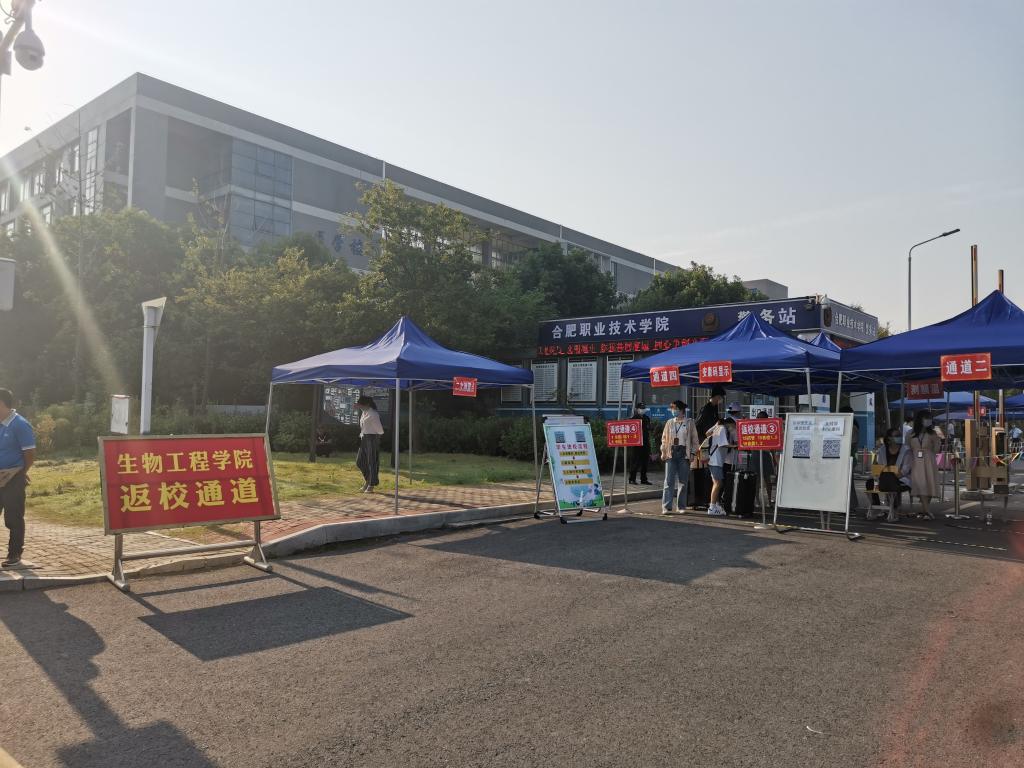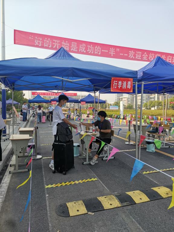 演练现场,学生入校时按照地贴位置间隔1米排队等候,消毒、测体温;出示入校审批表、刷“安康验证码”、更换口罩;登记入校、领取住宿证明,并由志愿者引导,按照学校指定线路到学生公寓。进公寓环节再次消毒、体温测量、验码、登记进入公寓。演练过程中若学生体温检测或健康码核验异常,将由专人将其带至临时观察区进行复查,并依据学校疫情防控工作方案和应急处置方案迅速采取应对措施。