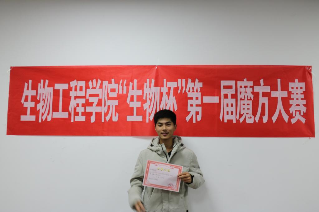 最后,经激烈的角逐,统计评选出了一等奖1名、二等奖2名、三等奖3名,优秀奖2名。其中,20药学4班的孙俊杰以31秒62的优异成绩获得了第一名,团总支书记肖昕为其颁发证书。比赛在大家的合影留念中圆满结束。