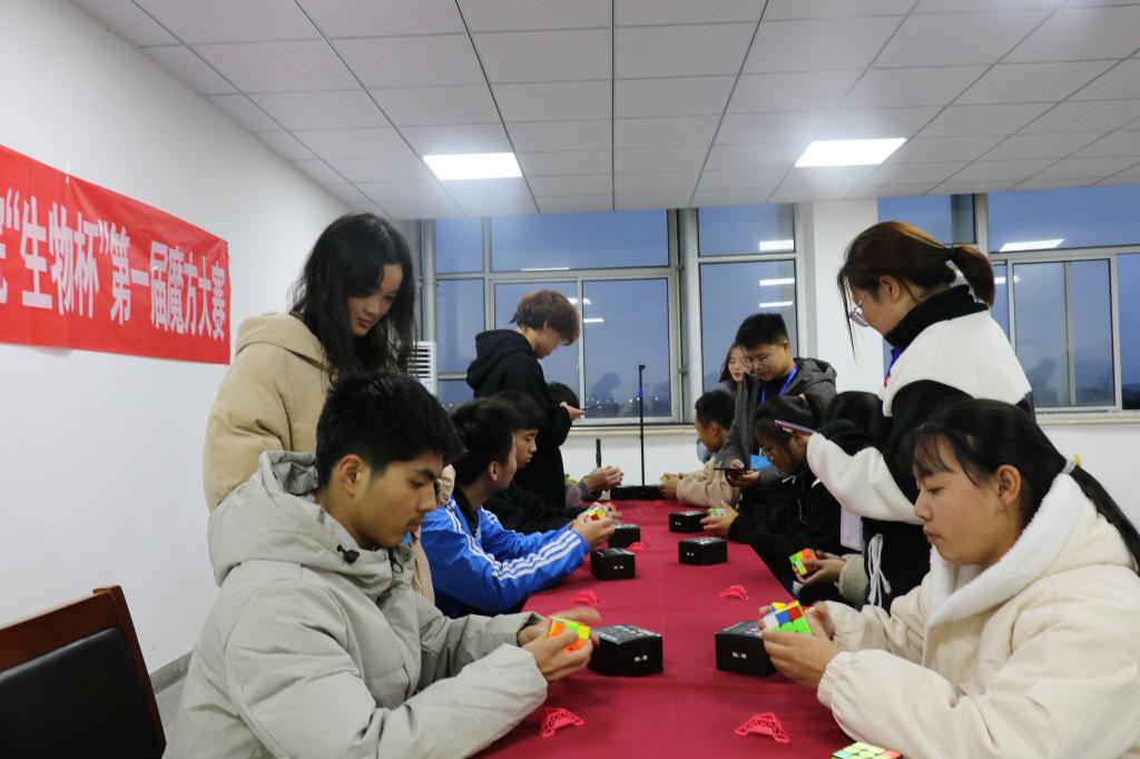 11月27日下午,由beat365中国官方网站团总支主办,院学生会承办,院学管办给予指导意见的beat365中国官方网站“生物杯”第一届魔方大赛在生化楼A304成功举行。beat365中国官方网站团总支书记肖昕、学管办主任周婷、参赛学生、工作人员及裁判员共40余人参加本次活动。