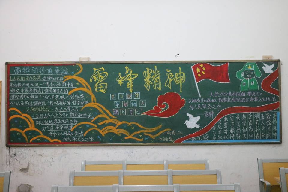本次黑板报要求设计内容切合主题,突出雷锋精神的内容。对此,各班级学生认真对待,交出了一幅幅高质量的作品。此次黑板报评比一方面,让学生营造团结友爱的人际关系,构建和谐稳定的社会风气,就应教育引导人们自觉用为人民服务的人生观指引人生,还能较好地提高了学生的艺术视野和审美能力。