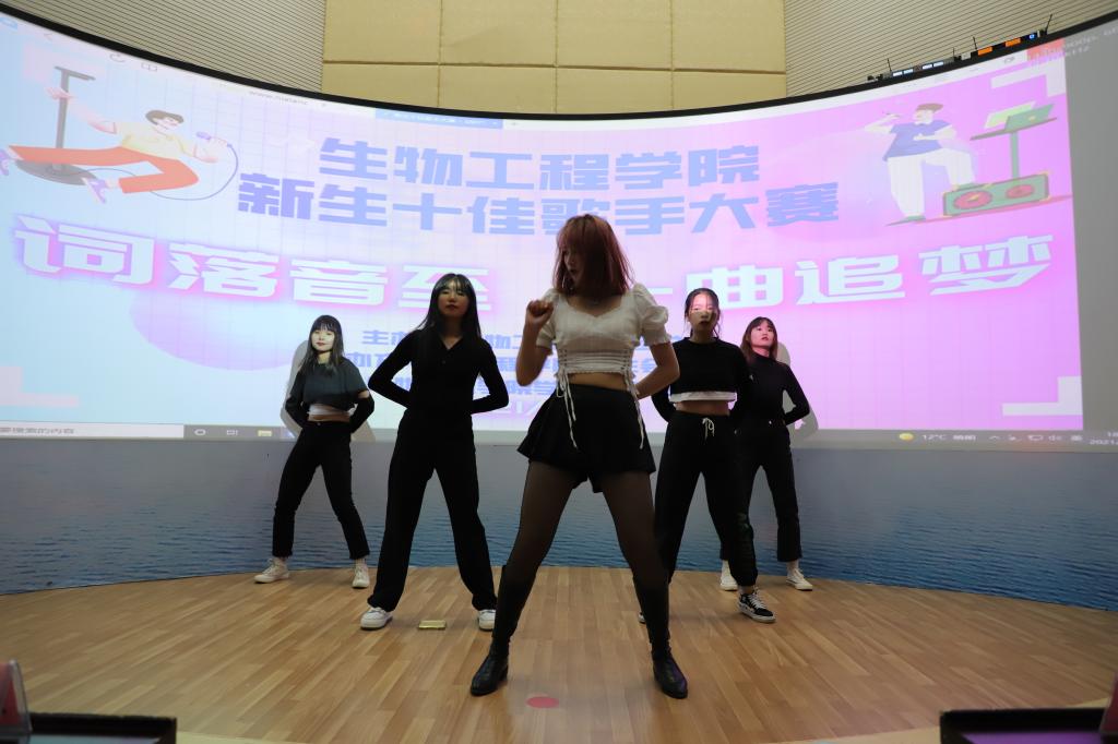 热情被点燃,选手们也蓄势待发。他们带着早已准备好的歌曲踏上了属于自己的舞台,在灯光和伴奏声中,他们演唱了一首又一首曲目,用声音打动着听众,用情感与大家交流。流行、古风、Rap...各种不同类型的歌曲在报告厅回荡,青春由此激荡,梦想在此启航!互动环节中,学生会办公室准备了中场小游戏,汪春荣书记为大家献唱《身披彩衣的姑娘》,场内气氛迎来一次小高潮,不仅拉近了师生之间的距离,也舒缓了大赛的紧张氛围。