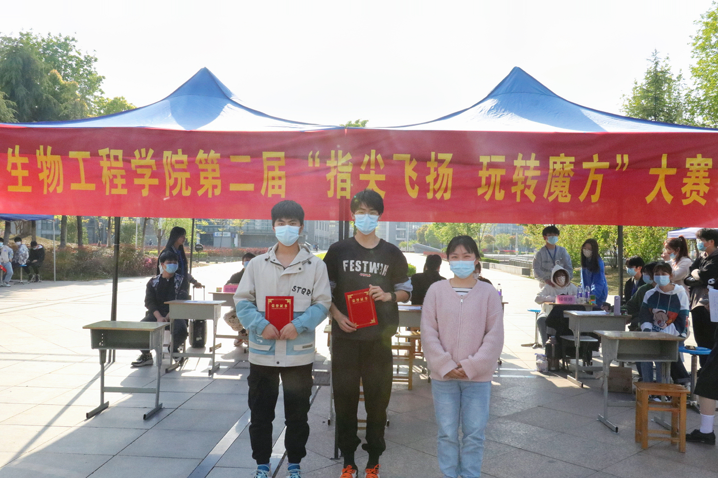 清明时节,景丽春和。为了丰富疫情期间在校大学生的假期校园生活,促进当代大学生“德、智、体、美、劳”全面发展,beat365中国官方网站团总支延续魔方热潮,于4月5日下午在鼓山校区举办“生物杯”第二届魔方大赛。本届大赛由beat365中国官方网站学生会组宣部承办,面向20、21级全体在校学生,有参赛选手、工作人员和志愿者共60余名同学参与。