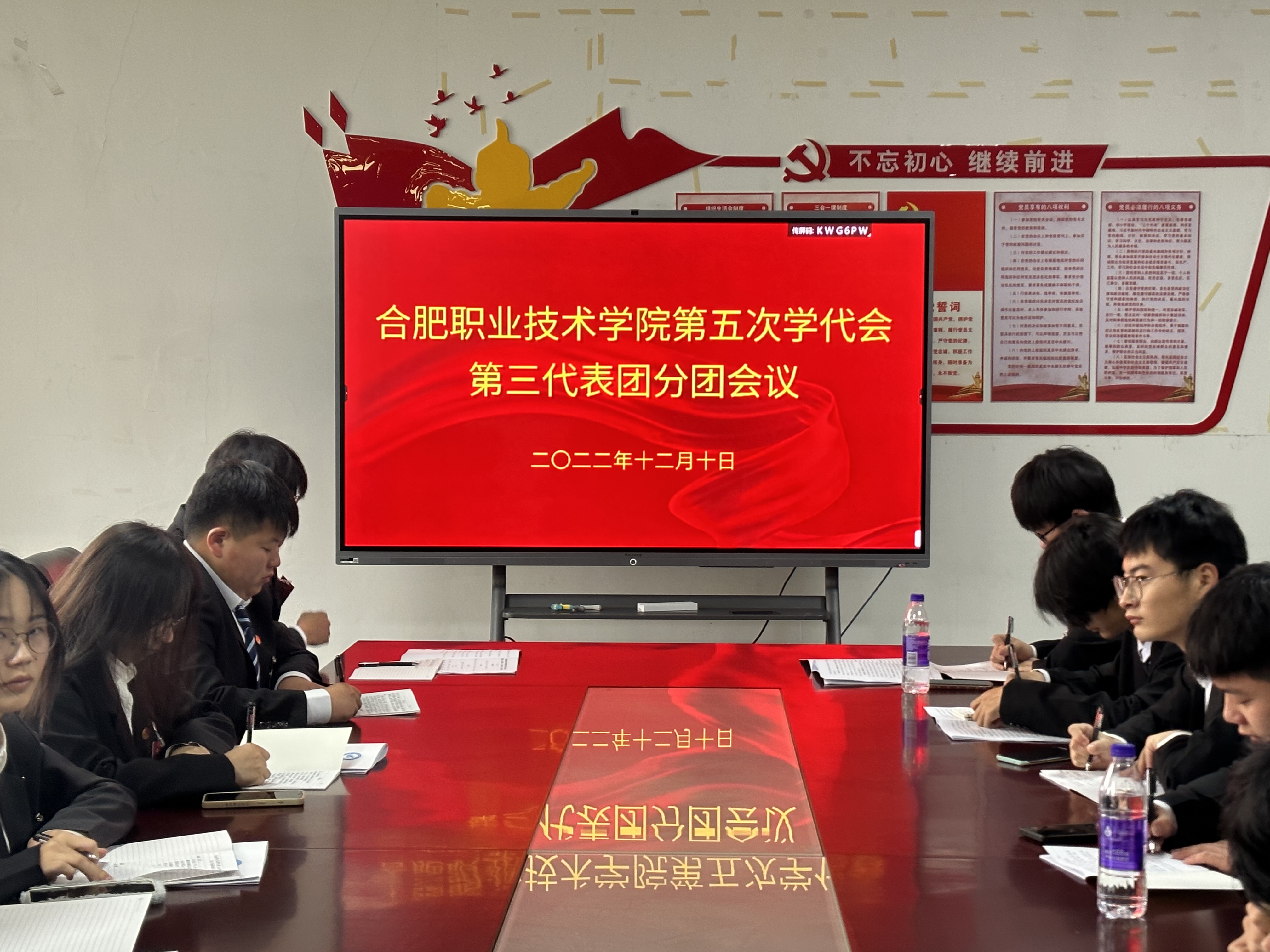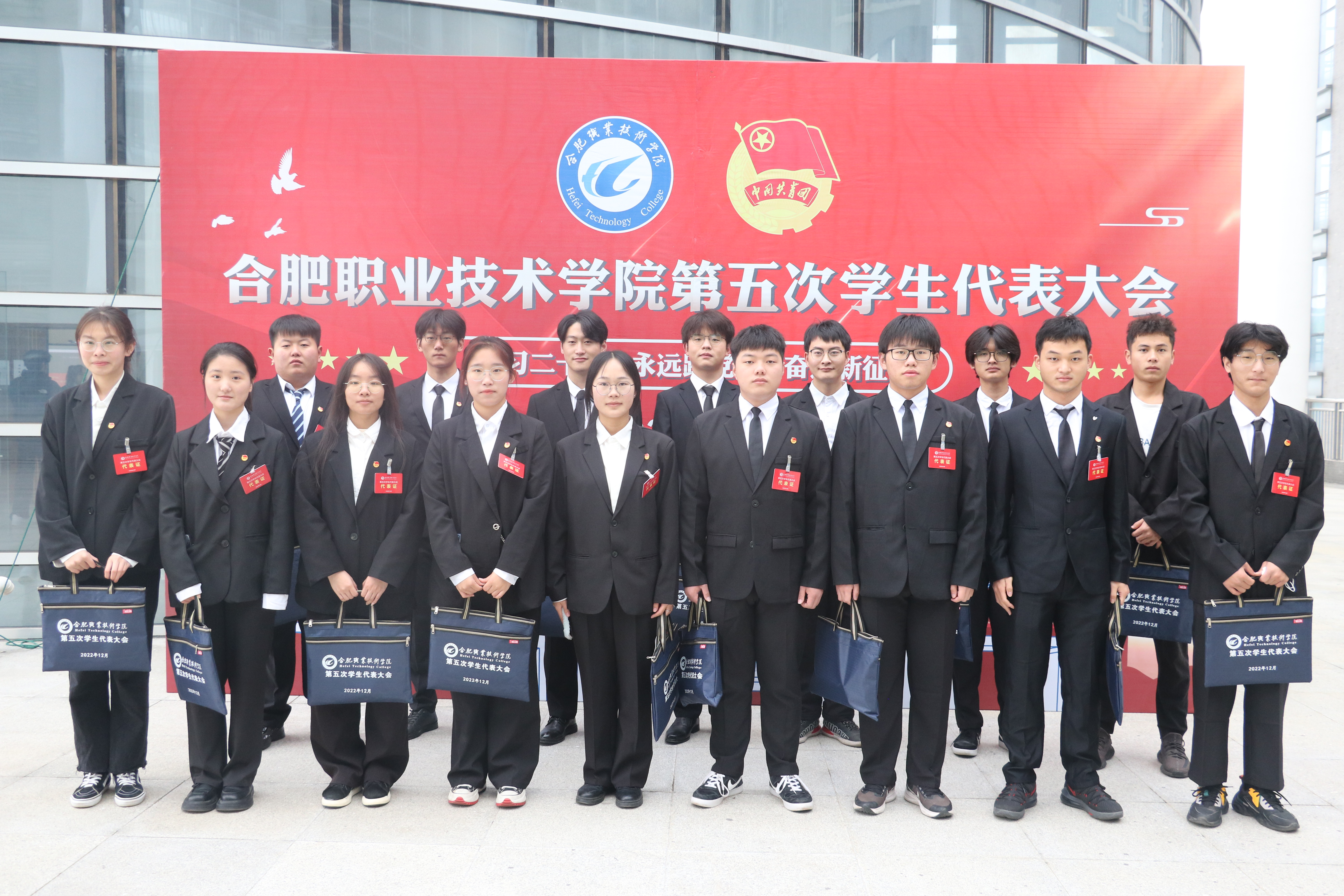 在全国上下认真学习宣传贯彻党的二十大精神之际,合肥职业技术学院第五次学生代表大会于2022年12月10日在图书馆二楼报告厅举行召开。beat365中国官方网站代表团共十六名代表在团总支书记肖昕、学生会执行主席崔恒瑜带领下参加此次学代会。