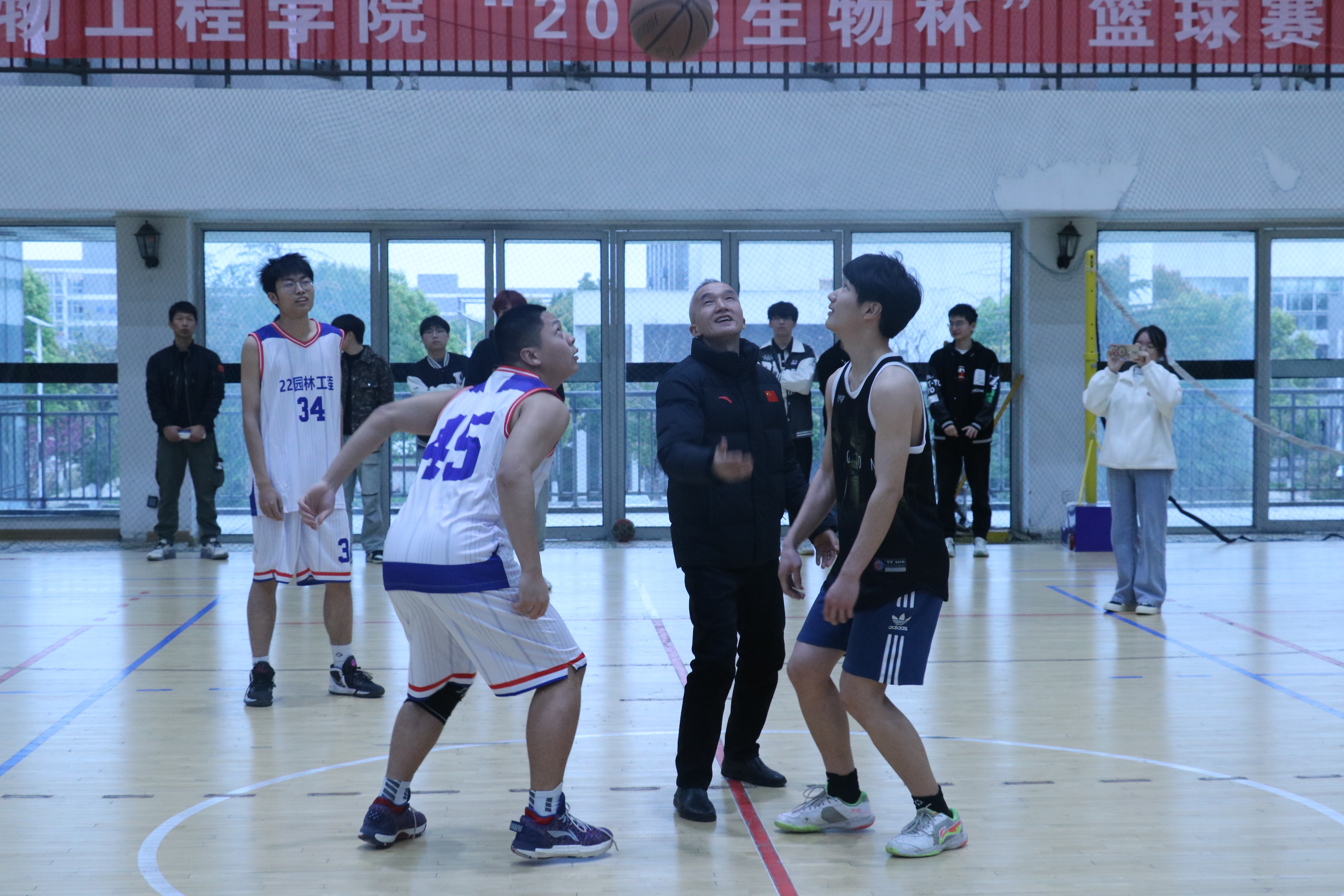 为塑造大学生健康体魄,促进在校学子的交流和沟通,增强同学们的集体凝聚力,3月30日下午,beat365中国官方网站团总支于鼓山校区体育馆二楼举行“2023生物杯”篮球赛开幕式。beat365中国官方网站党总支书记汪春荣、党总支副书记周婷、团总支书记肖昕、学管办老师和22级各班篮球队出席开幕式,本次大赛由院学生会体育部承办。