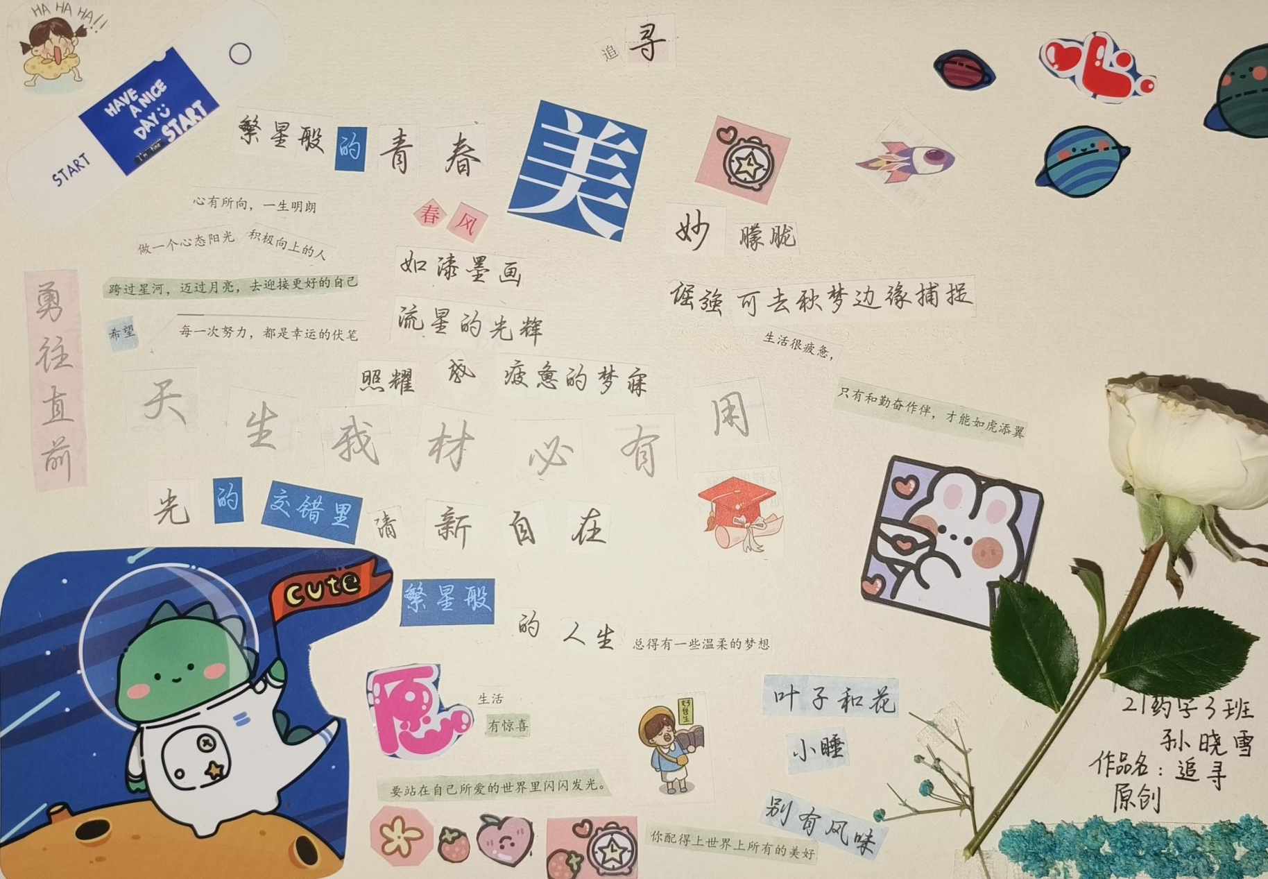 活动一经发布就吸引了众多beat365中国官方网站的诗歌爱好者踊跃参加,各班同学纷纷从旧书、旧报、旧单页中摘出字句,按照自己的灵感重新组合并贴在一起,创作成具有独特意义的诗歌。同学们通过剪下书本里的零碎诗意,拼凑成一首崭新的诗。在“破坏”与“重建”的过程中,达到了让同学们放松、疗愈,并促进他们自我觉察,激发积极力量的效果。经过一周的时间,beat365中国官方网站二级辅导站共收到作品29份,根据作品内容、美观以及原创程度,评选出一等奖作品两份、二等奖作品三份、三等奖作品五份,和优秀奖若干。
