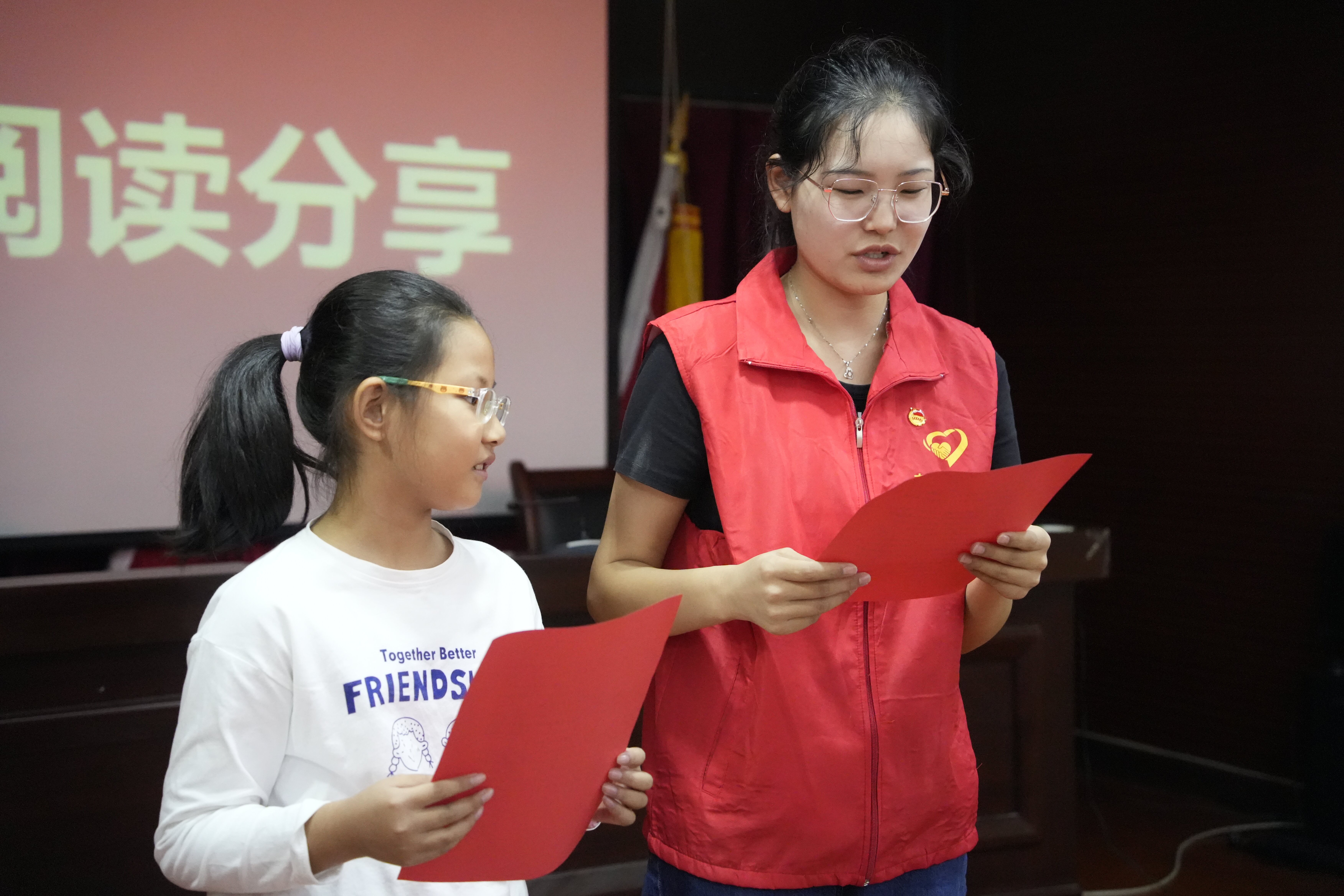 在活动开始时,志愿者们热情友善的用普通话和小学生们进行交流,迅速拉近了彼此之间的距离。接下来还准备了绕口令及诗朗诵的小游戏,鼓励小学生们积极参加并赢得了阵阵热烈的掌声,和谐热闹的活动氛围,让他们认识到说好普通话的重要性并对普通话产生了浓厚兴趣。接下来,志愿者们播放了一段关于九一八事变的历史视频资料,伴随着沉重肃穆的背景声,轰鸣的炮火和战争的画面一幕幕闪现,这场惨痛的历史事件被缓缓讲述着“1931年的9月18日,日本驻中国东北地区的关东军突然对沈阳发起了袭击……”视频结束后,每一个观看者的心情都十分沉重,引发了大家对于战争的深刻思考,更珍惜当今和平生活的来之不易。志愿者们还准备了很多的红色革命故事,带领着孩子们一起阅读分享红色故事。在这14年的抗战之中,我们的革命先烈们发生了众多感人至深的革命故事,大家一起认真的阅读着,在文字中体会当年革命艰难困苦的条件,深刻感受到了先烈们伟大的抗战精神。