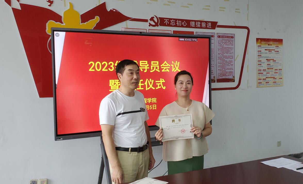 首先,学管办主任季学强宣读了《beat365中国官方网站关于聘任郑丹等十名2023级辅导员的决定》,慈龙保为他们颁发了聘书。
