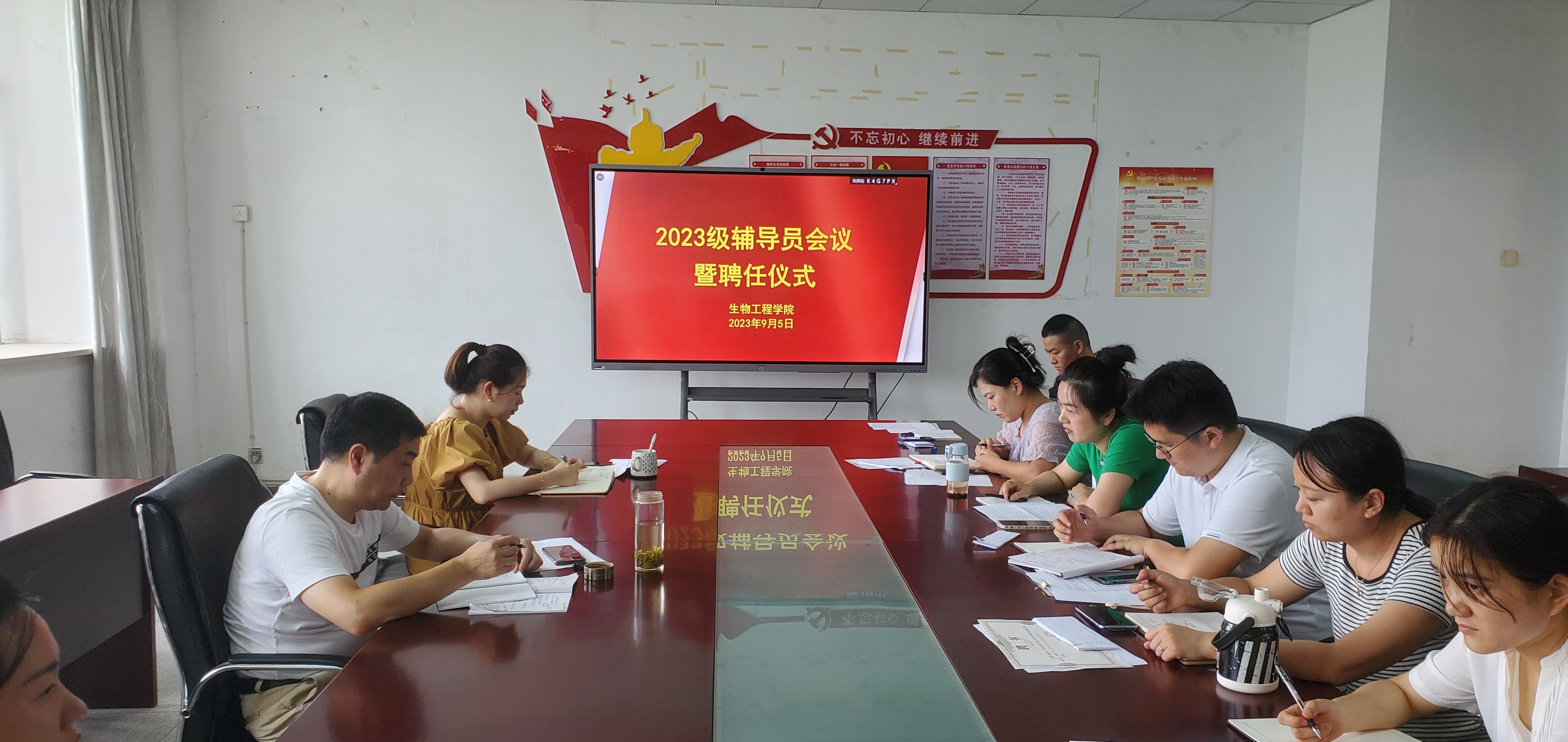 9月5日下午,beat365中国官方网站在生化楼A311会议室举行2023级辅导员聘任仪式暨新生报到工作会议。会议由学院党总支副书记周婷主持,党总支副书记(主持工作)慈龙保出席并讲话,全体学生管理工作人员、23级辅导员参会。