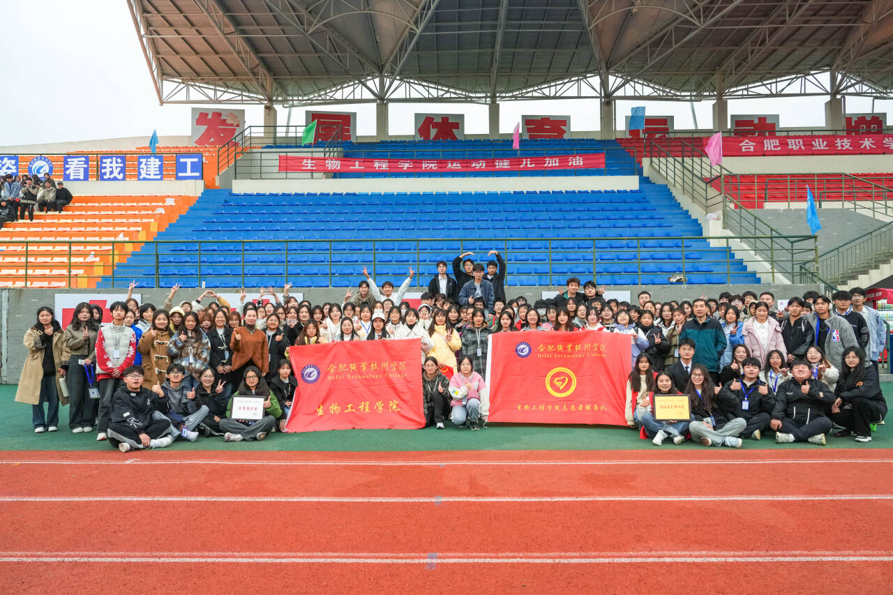 11月10日下午,beat365中国官方网站参加合肥职业技术学院鼓山校区第十一届校田径运动会闭幕式。