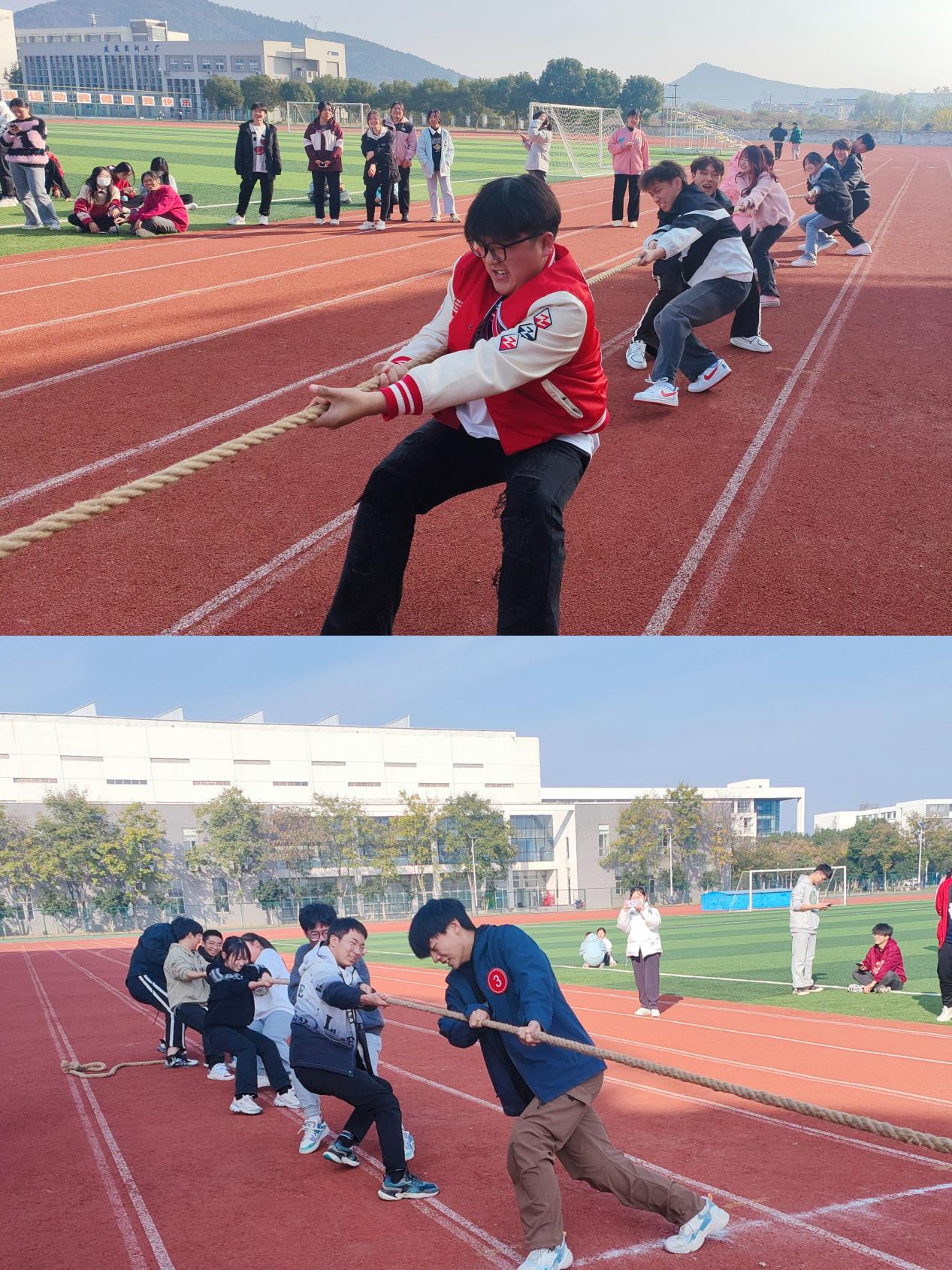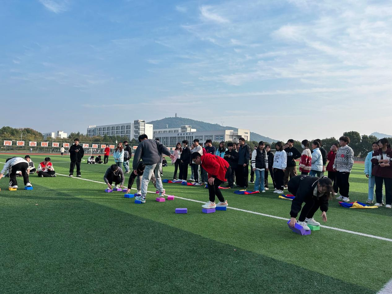 本届趣味心理运动会共设置“趣味拔河”、“同舟共济”、“袋鼠跳跳乐”、“摸石过河”等四个项目。“趣味拔河”阶段,每支参赛队伍为集体荣誉拼尽全力,呐喊声、加油声、欢笑声此起彼伏。