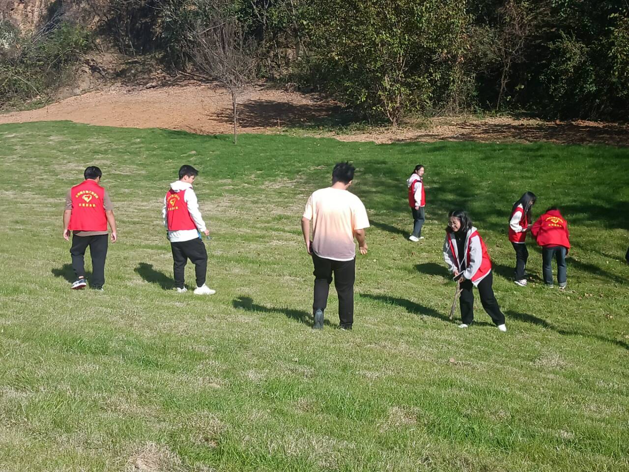 活动开始,全班同学分成四个小组,每个小组都构思了一个特色鲜明的队名和口号。在接下来的志愿服务活动中,每个小组都有特定的任务,同学们互相积极配合着清理公园里的垃级、维护公园里的设施、进行垃圾分类等。在完成这些任务的过程中,他们不仅锻炼了身体,增强了团队合作精神,最重要的是同学们在活动中宣传了环保知识,提升了个人责任感,亲身感受到了生态环境文明保护的重要性以及志愿服务的传承精神。